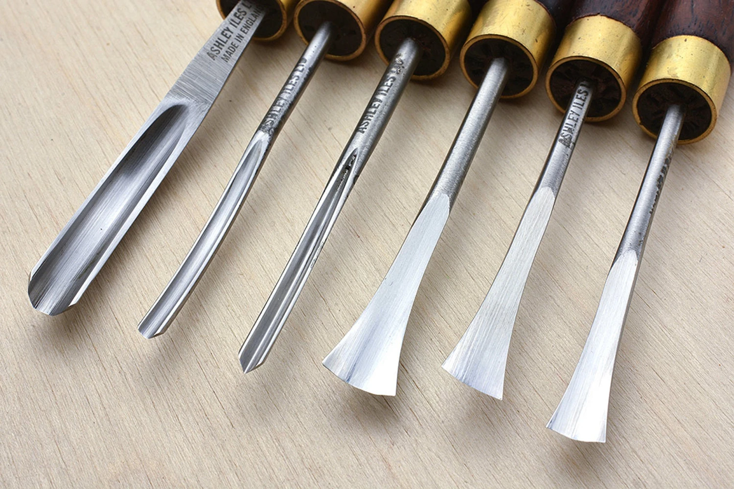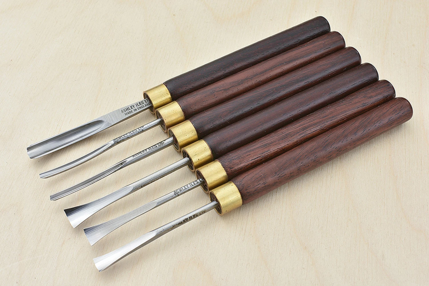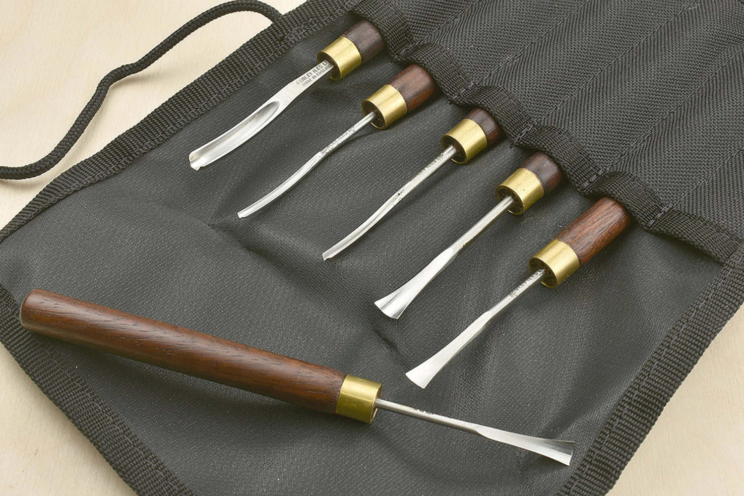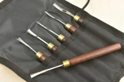 Peter Benson Set 1 includes: Curved Gouge No.20: ³⁄₁₆” (No.11 Sweep) Curved Gouge No.18: ¹⁄₁₆” (No.9 Sweep) Curved V Tool No.40: ¹⁄₁₆” Fishtail Gouge No.5: ⁵⁄₁₆” Fishtail Gouge No.3: ¼” Fishtail Gouge No.4: ³⁄₁₆” Ashley Iles 6 pocket carving tool roll Rather than just being a random selection, Peter did a trial with his students, getting them to log which tools they used and how frequently over a period of several weeks – the tools that made it into sets 1 and 2 were the most frequently picked up.