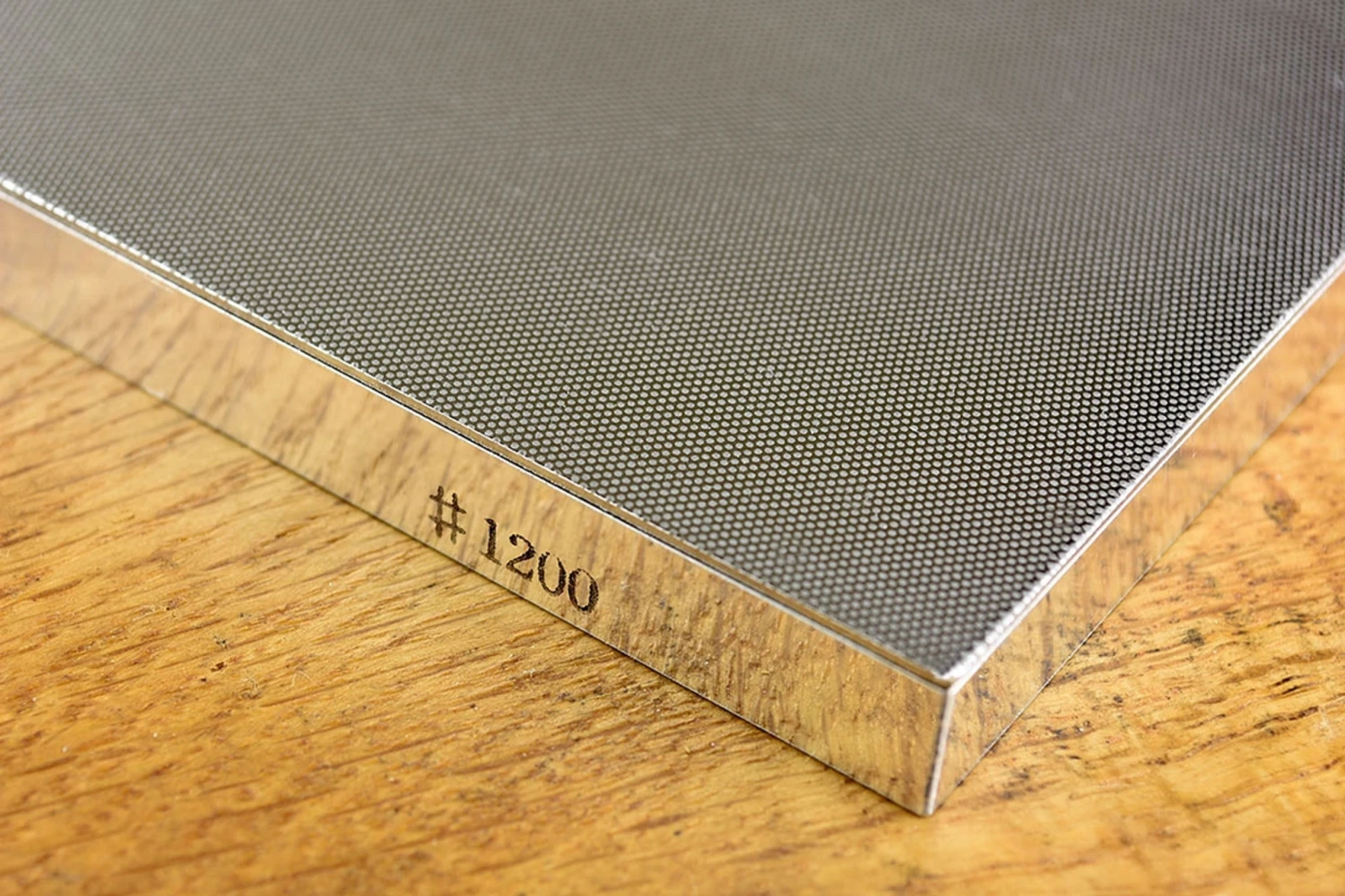 The full set of four Atoma diamond sharpening plates, with a discount plus free: 250ml tin of HoneRite Gold concentrate (enough to make 6 litres of honing fluid), leather bench mat and spray bottle. Working through all of the grades in sequence is the most efficient route to the best possible surface, completely replacing the scratches from the previous grade at each step. You can skip from 400 to 1200 for tiny surfaces like secondary bevels, but for larger areas like the flat sides of blades you’ll save precious time and extend the life of your diamond plates by using the three finer ones in order. Diamond stones are not suitable for working on the bevel side of laminated blades – the soft backing material will gum up the surface – as will brass, aluminium or anything else soft. Kit Incudes Atoma Diamond Sharpening Stone #140 Atoma Diamond Sharpening Stone #400 Atoma Diamond Sharpening Stone #600 Atoma Diamond Sharpening Stone #1200 General Purpose Workshop Leather Shield technology HoneRite Gold 250ml Spray bottle Regular price of items if sold individually £353.75 Plate size: 210mm x 75mm (8¼” x 2⅞”) Dos: Use plenty of fluid and light pressure. Fading the pressure out gradually as you finish will leave a finer scratch pattern and reduce the amount of strokes you need to take on the next plate. Use light pressure, the diamonds are cutting tools and if you let them do their job they will serve you well for many years. Expect all diamond surfaces to have a vicious bite initially and then gradually bed in over the first few uses, this is completely normal. As long as you keep them clean and cool and avoid using too much pressure they will cut like the wind for years. Use liberal quantities of some kind of fluid on them, water with a few drops of dish soap, window cleaner, water treated with Honerite Gold all work well. Light contamination can be cleaned from the surface with an ordinary pencil rubber (eraser), if they get really grubby, moistening the surface with a bit of white spirit will help to lift the crud. Don’ts: Avoid using them with soft metals like brass, wrought iron or aluminium as these will gum up the surface and are impossible to remove. Avoid using them for the bevels of laminated blades as the backing material is often soft and will gum up the surface. Avoid using too much pressure, especially on the edges, the diamonds themselves are virtually indestructible, the electroplating that holds them to the surface will last much longer if you don’t lean on it and scrub. Avoid using oily lubricants on them, the greasy residues attract dust which will gum up the surface.