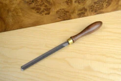 Strictly speaking the Bahco ‘Wasa’ Feather Edged File is designed for sharpening saws, but it is one of those tools for which you soon find a multitude of other uses. The combination of shallow profile and very fine teeth create a superb finish in places that other files cannot reach.This high quality smooth cut file is 6″ (150mm) long from shoulder to tip. It is ⅝” (15.8mm) wide, parallel and rhombic shaped with single cut edges and surfaces, Style-A toothing. Suitable for saws with 5-8tpi.Fitted with a comfortable Holtzapffel pattern Walnut handleBahco code 4-272-06-3-0