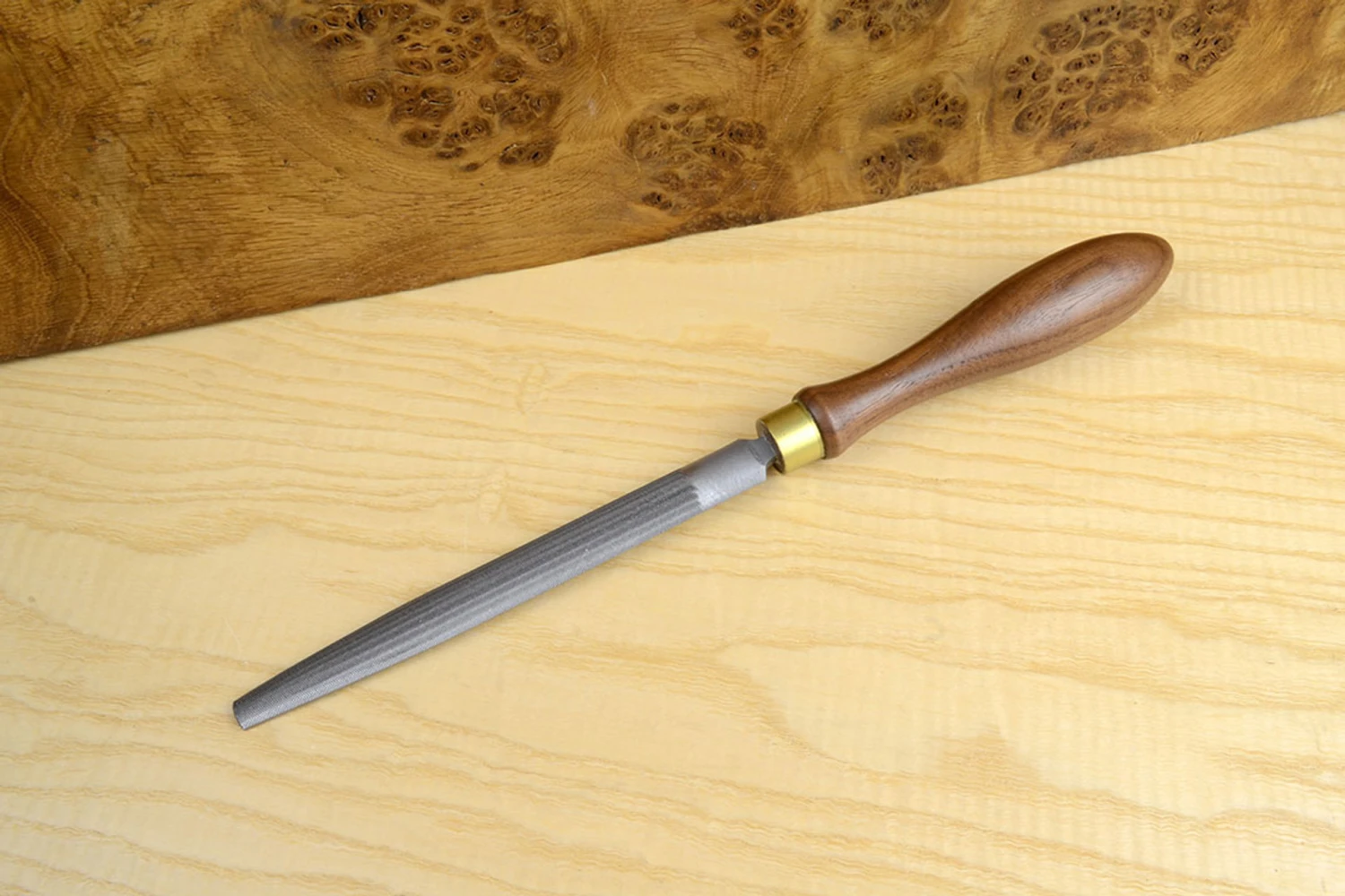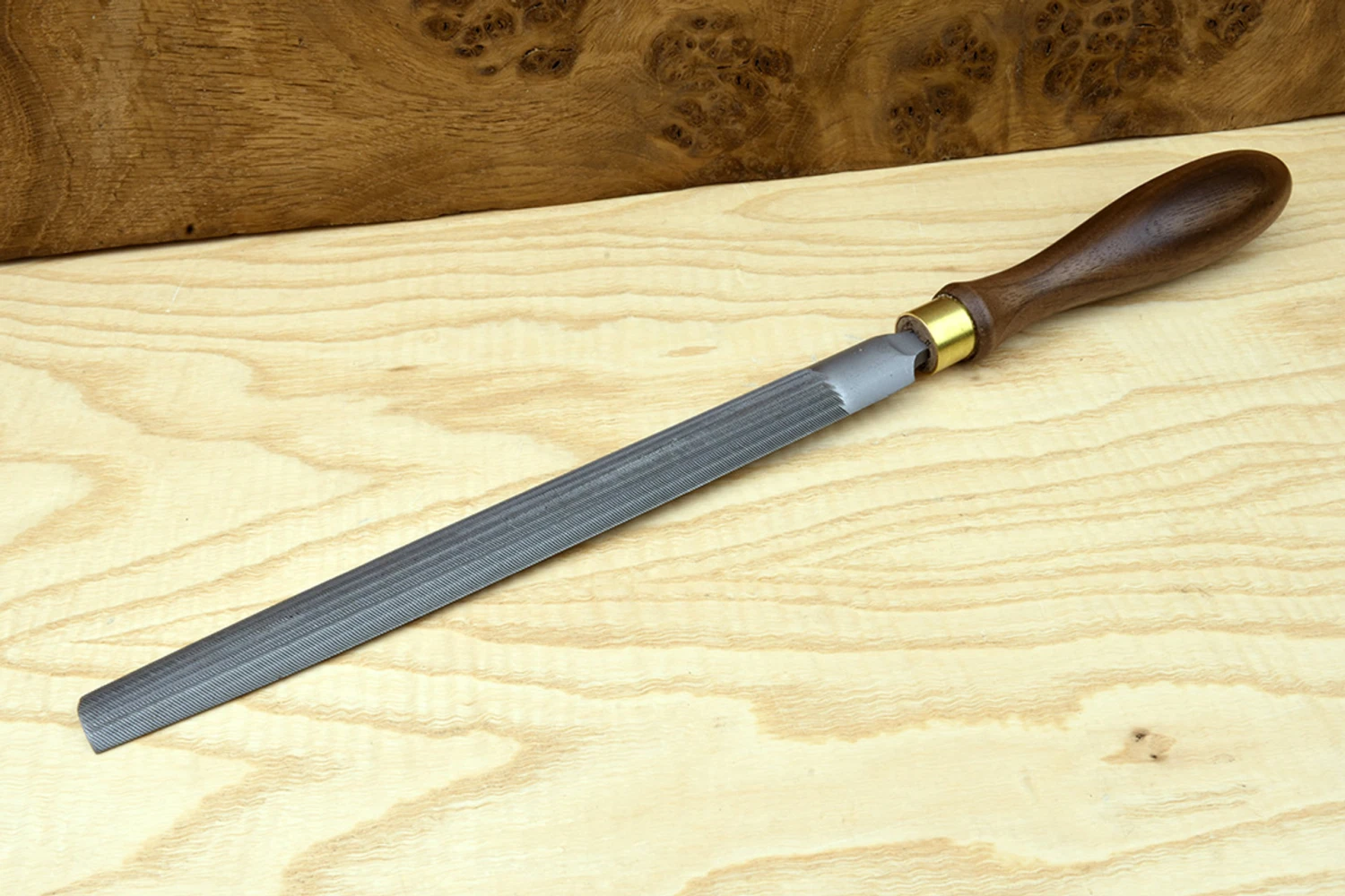 High quality double-cut half-round files made from alloyed high-carbon tool steel and fitted with superbly comfortable British made Holtzapffel pattern walnut handle.Parallel sided over two thirds of the length and tapered towards the tip, with double cut flat face, single cut rounded face and toothed edges.For best results, hold the file at both ends and at a slight angle to the work. Advance the file forward and across, with even pressure to bring the maximum number of teeth into contact with the work. Avoid rocking and lift off on the return stroke to avoid dulling the cutting ridges.To clean your files gently brush out any accumulated debris with a soft wire brush or file card, always going along the ridges rather than across them. To minimise the chances of the file clogging when working with soft metals, apply chalk liberally to the surfaces before you begin.Bahco Product No.file cutlength mmwidth mmthick mmt/cmSKU1-210-04-3-0Smooth100103283231151-210-06-1-0Bastard150164.7133231471-210-06-2-0Second150164.7183231261-210-06-3-0Smooth150164.7223231551-210-08-1-0Bastard20020.56103231061-210-08-2-0Second20020.56143231451-210-08-3-0Smooth20020.5622323146