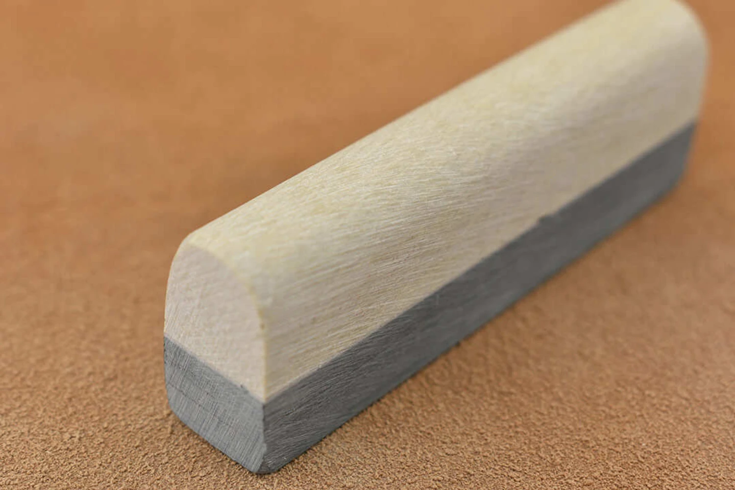 Regular shaped slabs of round top yellow coticule whetstone that are bonded to a non-sharpening supporting layer of shale, great for sharpening curved blades, rounded chisels, curved gouges etc.This is a selected coticule, cut from clear creamy coloured veins that have minimal cosmetic inclusions.What grit is coticule? In terms of where it fits into your sharpening regime, the answer is 4000 – 10,000 depending on how you use it – a thick slurry and moderate pressure gives a fast cut, just water and light pressure gives the finest finish.