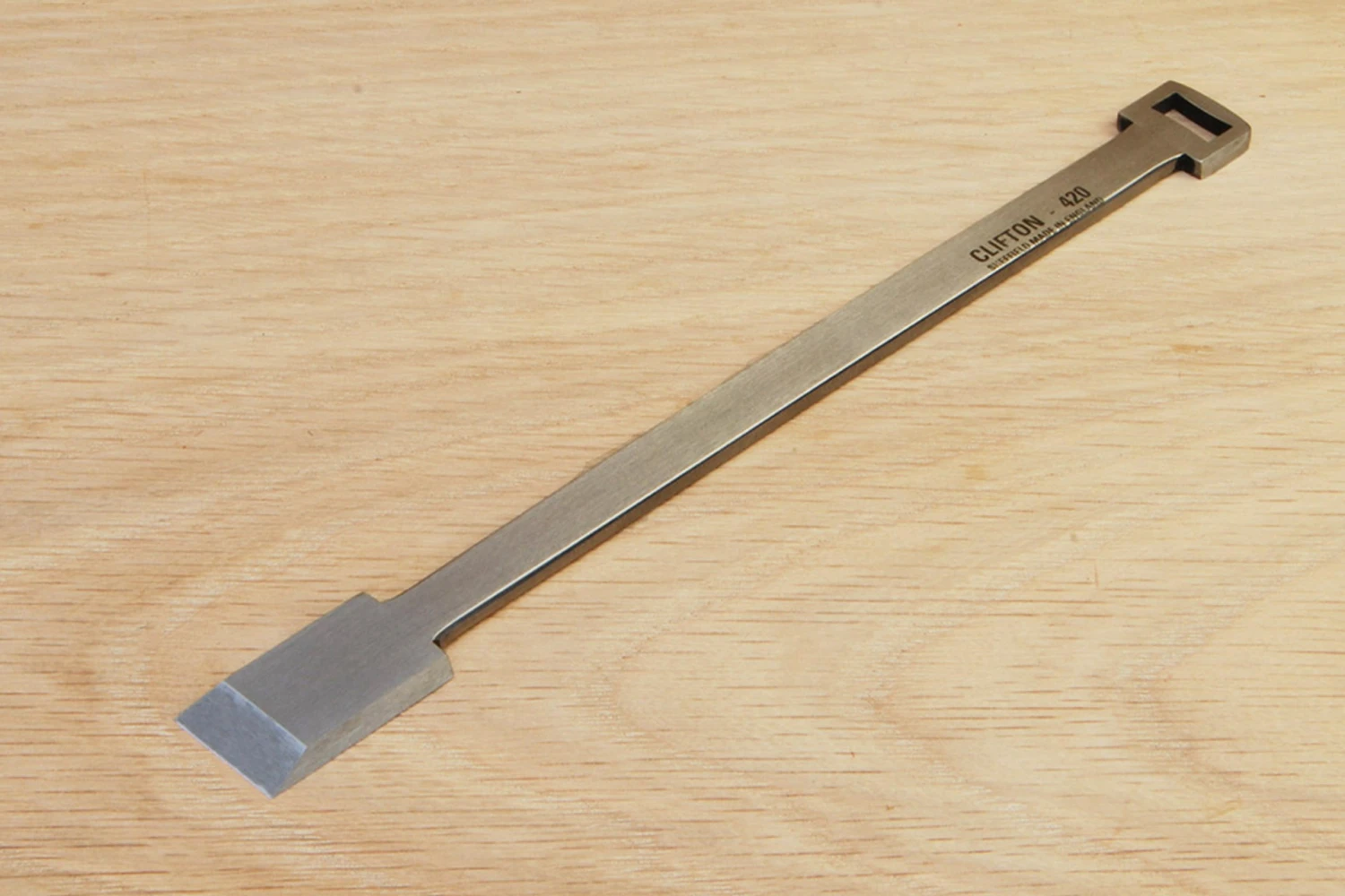Clifton blade to fit 420 plane.¾” (19mm) wide – high quality oil hardened tool steel, RC59-61.Overall length: 187mm (7.36″ approx)Blade length: 30mm (1.18″ approx)Blade width: 19mm (0.74″ approx)Blade thickness: 3mm (0.11″ approx)