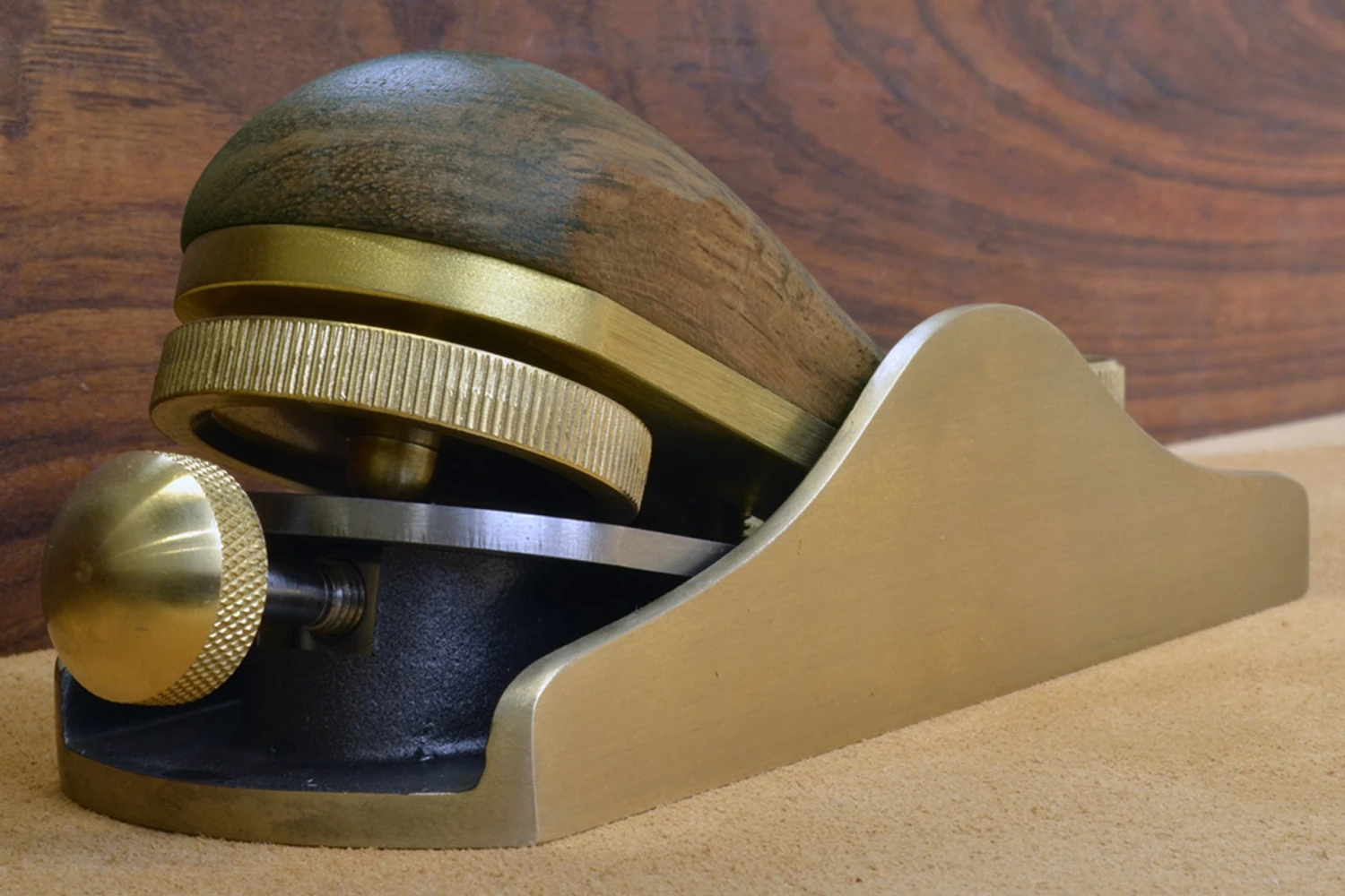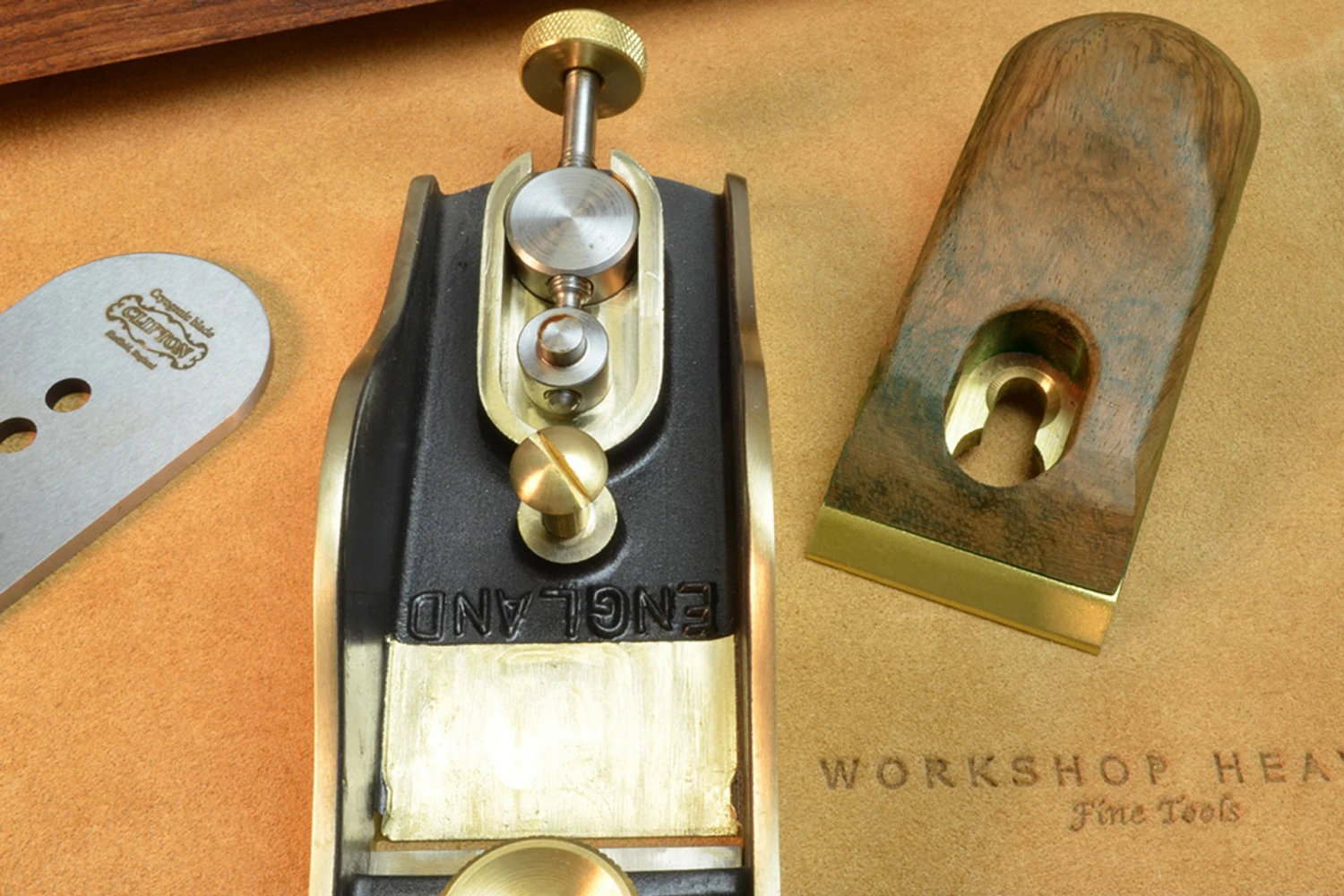 The new Clifton block plane is based on the proportions of a No. 9½ low angle block plane. A little broader than the 60½ with a generous cutting width of 1⅝”, they sit particularly well in a medium to large hand.Clifton block planes are made from vacuum cast bronze, a technique that ensures a very high integrity casting with no voids or porosity. Like the Clifton bench planes each one is individually machined and then finished and assembled by hand.The blade of the Clifton is made from roll forged O1 carbon steel and given the same superb heat treatment as the bench plane irons. Adjustment comes courtesy of an elegantly incorporated Norris adjustment mechanism complete with little nubs in the bed to hold the blade centrally and ensure that it pivots consistently.The cap, laminated from solid brass and walnut, makes a wonderfully tactile interface and brings an element of nature into your little gold bar.Over time both the bronze and the walnut will mellow and take on a beautiful rich brown patina, with polished spots where your fingers fall.Sole Dimensions: 2″ x 6⅜” (50 x 163mm)Blade: O1 carbon steel ⅛” (3mm) thick Cryogenically hardened to RC61Weight: 950g (about 2lbs)