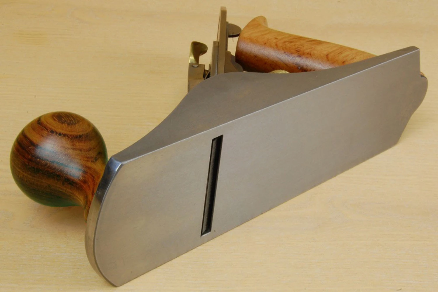The Clifton No 4 is the most popular size of smoothing plane. Designed to take an incredibly thin shaving from wood that has already been flattened, leaving a flawless silken surface that is ready to receive finish. At 4lbs 6oz (2kg) the Clifton No 4 is nearly half a pound heavier than its North American rivals. 9½” long with a 2″ cryogenic cutting iron it feels sturdy and capable from the moment you first pick it up. The bedrock frog has a fully machined underside, which mates perfectly, across its entire surface, with the fully machined bed in the sole casting. Even with the frog adjusted forward, closing the mouth up to ¹⁄₆₄” or better, the blade remains solidly clamped and well supported. The other nice feature of the Bedrock setup is that the mouth setting can be adjusted from the rear of the frog, negating the need to remove the iron and lose your settings. To do this, simply slacken off the two outside screws and then wind the centre one clockwise to tighten the mouth or anti-clockwise to open it. New stock will be fitted with walnut handles Please note: Clifton no longer supply their planes with polished lever cap.