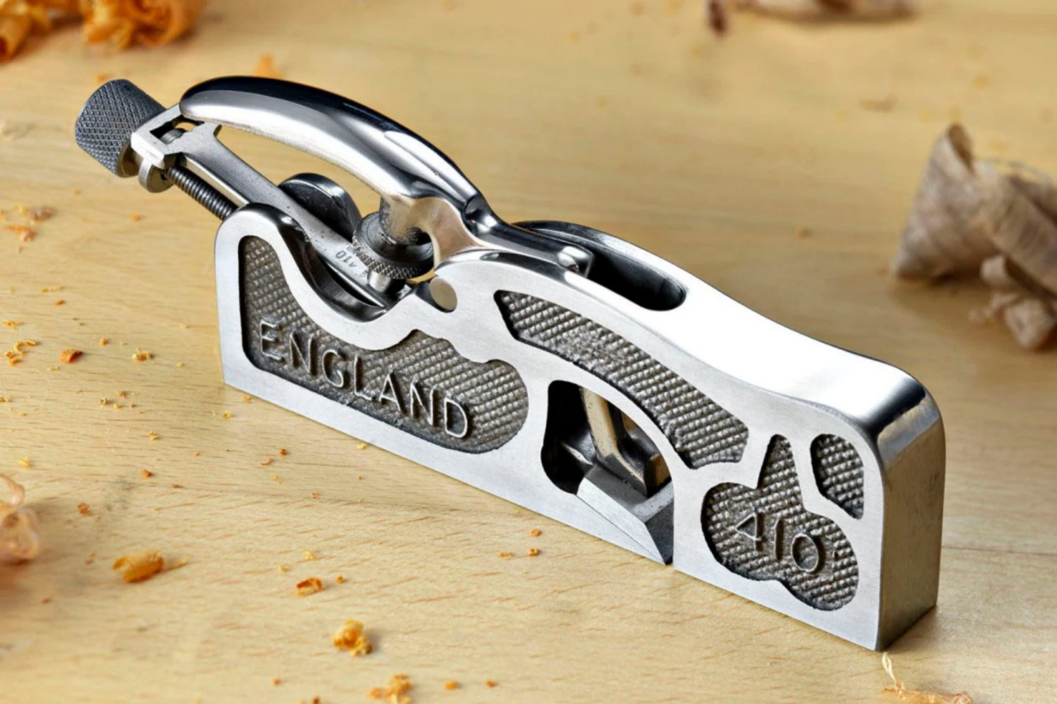 Light, narrow and extremely accurate, the Clifton 410 is a perfectly proportioned shoulder plane for one handed use.At just ¹¹⁄₁₆” (18mm) wide, the 410 is perfect for cleaning up machined rebates and housing joints as well as trimming tenons.The cutting iron is considerably thicker than both the Preston original and the later Record versions. It sits on a beautifully machined 18.5 degree bed with the unbreakable malleable iron lever arm applying pressure directly behind the 25 degree bevel. The mouth is exquisitely fine, giving a very high standard of surface finish. Length: 5½” (138mm) Width: ¹¹⁄₁₆” (18mm) Weight: 1lb 2oz (0.5 Kilos)