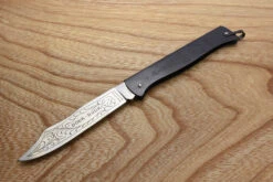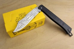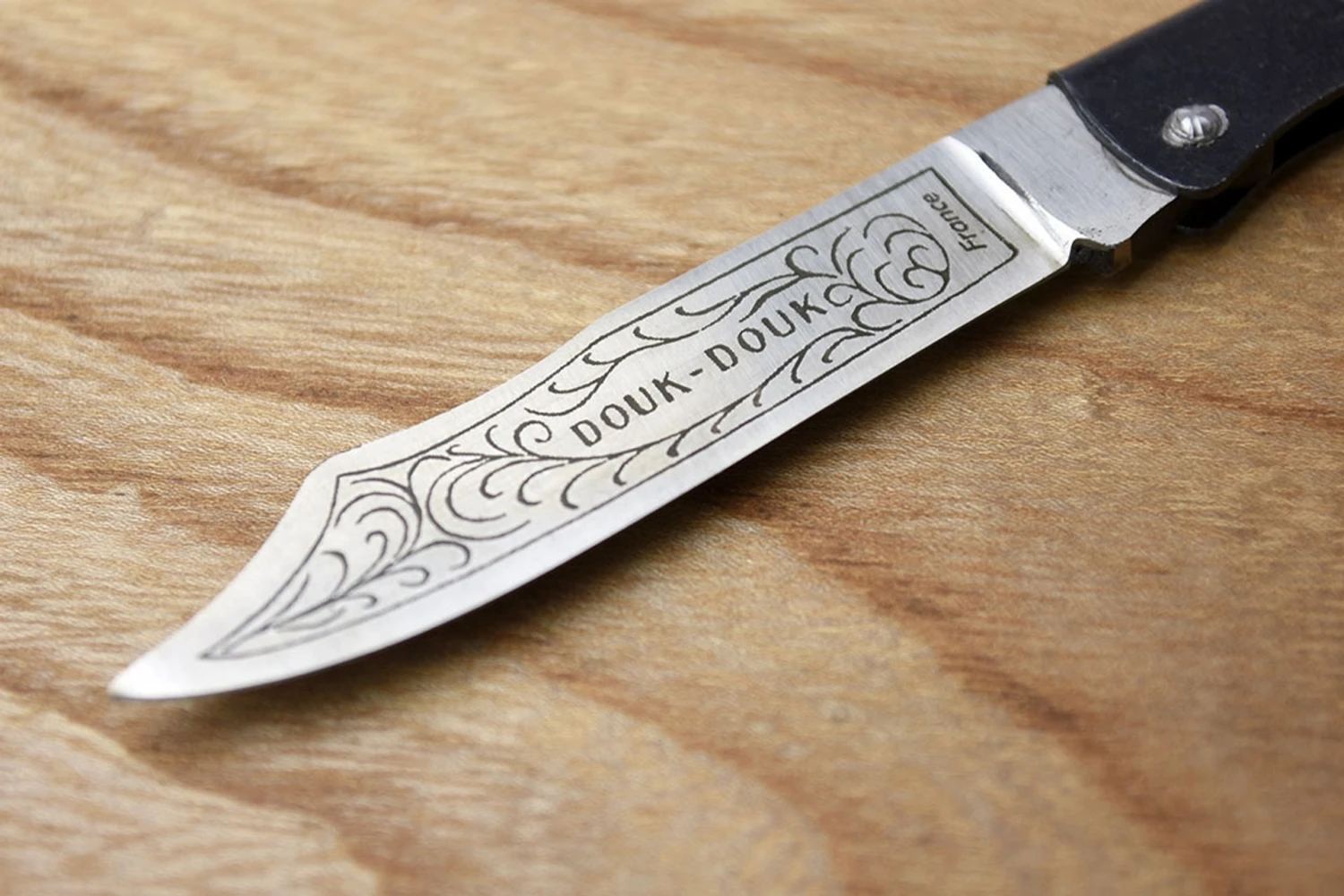 The legendary French pocket knife, made in Thiers by M C Cognet since 1929, the Douk Douk is a simple, affordable, utility pocket knife with a thin blade made from high carbon steel. The name ‘Douk Douk’ refers to Cognet’s trade mark of a Melanesian shaman depicted on the side of the knife.Both sizes of this slip joint folding knife have a fairly stiff backspring, the folded steel body is recessed so that the tapered blade can be pulled out between thumb and forefinger. Be sure to keep your fingers out of the way when closing the knife.Douk Douks arrive well ground, but require an initial light honing to bring out the full potential of the blade.The medium size has a 3⁵⁄₁₆” blade, so in the UK you do need a valid reason to be carrying it in a public place, it’s a bit big for pocket use anyway but makes a great workshop knife.The smaller version has a 2⅝” blade and can be carried as a general purpose pocket knife without a specific reason.