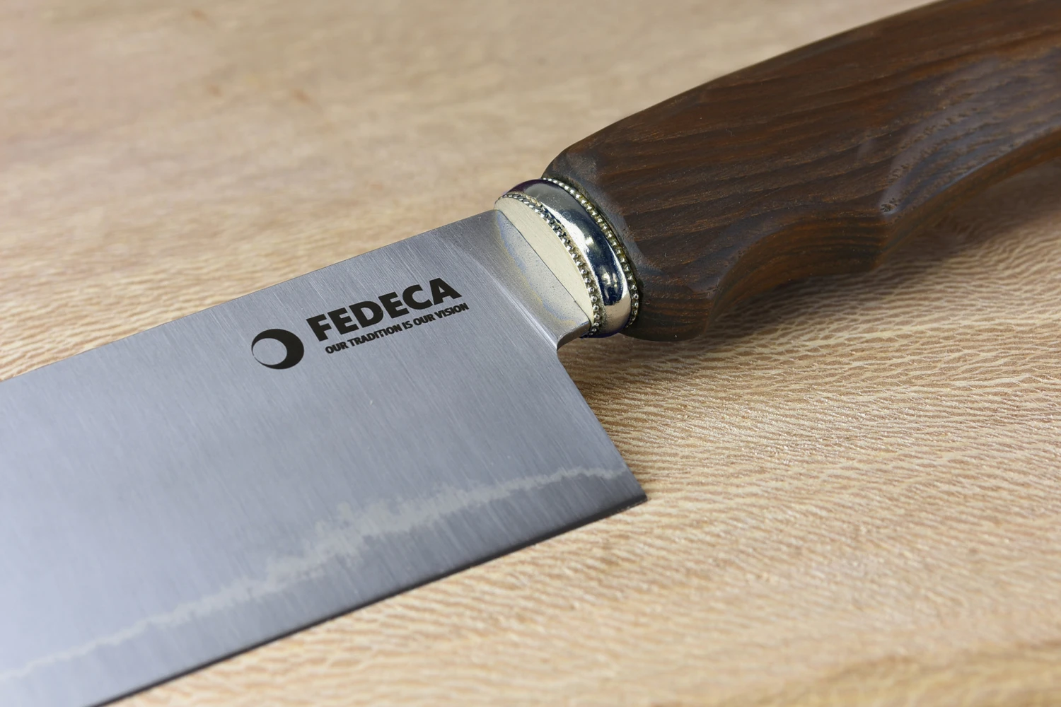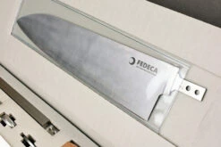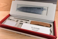 The Fedeca Large Santoku Knife Kit provides everything you need to make your own Santoku kitchen knife. Designed as a first knifemaking project to help beginners achieve a superb result first time around, you don’t need any heat treatment or forging equipment, belt grinder or anything. A vice and a couple of sharp files are helpful but not essential. The soul of any knife is its blade, so Fedeca use a fully ground, heat treated and sharpened blade of “silver paper steel No.3” – a laminated stainless steel with a core layer of VG-10. Whether you choose to give it a rustic or refined appearance is down to your personal tastes, but the result will always be a very high performance knife. It comes in a lovely presentation box complete with all the fittings and instructions. Blade length:172mm Overall length of finished knife: 296mm Handle: Burmese teak Fixings: Pre-polished Stainless Steel bolster & pommel, attachment screws, square tang, hex key & x2 sanding sheets Note: This knife is NOT dishwasher safe. A sharpening video by Ardennes Coticule.