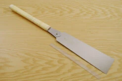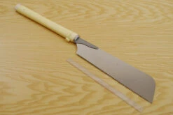 A set of four beautifully accurate Gyokucho Japanese saws. This set will cover crosscutting and sheet materials, ripping and resawing, dovetailing, tenons, fine joinery and flush cutting.Gyokucho 400 Proton Power Saw Ibarame Kataba 240mmThe Gyokucho 400 Ibarame Kataba has quite a stiff blade and 13 crosscut teeth per inch. This reasonably aggressive saw is excellent for crosscutting timber to length, making square or angled cuts for larger scale joinery and is also a great choice for zipping through panels in solid timber, sheet goods, veneered ply and composites.It leaves a smooth surface and almost no breakout on the exit side. The stubby spine provides a little extra support for the blade whilst still allowing deep cuts to be made. Blade length 240mm Overall length 550mm Blade thickness 0.6mm Pitch 1.9mm / 13 tpi Set 0.125mm per side Max depth of cut = unlimited Traditional rattan wrapped paulownia wood handle Replacement blade = Part No S400 Gyokucho 651 Blue Hard Ryoba Komame 240mmAn excellent general purpose saw for the cabinetmaking workshop, the Gyokucho 651 ‘Blue Hard’ Ryoba Komame has progressive rip teeth on one side of the blade and 20tpi crosscut teeth on the other. It has a slightly squarer blade, a thinner plate (0.45mm) and finer teeth than the standard range of Ryoba, making it much better suited to light, accurate work. Blade length 240mm Overall length 580mm Blade thickness 0.45mm Blade depth: 65mm to 82mm Crosscut pitch 1.2mm / 21tpi Progressive rip pitch 2.5mm to 3.9mm / 10 to 6.5 tpi Set 0.125mm per side Max depth of cut = unlimited Traditional rattan wrapped paulownia wood handle Replacement blade = Part No S651 Gyokucho 303 Tatebiki (rip) Dovetail Dozuki 240mmPurpose designed as a dovetail saw for the export market, the Gyokucho tatebiki (rip) dozuki is an absolute delight to use. Fast and smooth, it cuts beautifully under its own weight and is also very easy to keep on-line, the saw is designed for 6 – 18mm thick material with optimum performance at 12mmThe thin (0.3mm) blade removes very little material and leaves a clean surface for maximum joint strength. Blade length 240mm Overall length 550mm Blade thickness 0.3mm Pitch 1.5mm / 17tpi Set 0.1mm per side Max depth of cut 45mm Traditional rattan wrapped paulownia wood handle Replacement blade = Part No S303 (S306 and S311 blades will also fit this saw) Gyokucho 1151 Double Edged Flush Cutting Saw 125mmFlush cutting saws are delicate precision tools used to trim plugs, dowels, wooden nails and through tenons flush with the surrounding surface.The crosscut teeth of this saw have absolutely no set, so they do not scratch the surface. The blade is only 0.3mm thick and extremely flexible, light pressure with the index finger of your other hand is all that is required to hold the blade down onto the workpiece and achieve a truly flush cut. Blade length 125mm Overall length 270mm Blade thickness 0.3mm Pitch 1mm x 1.3mm 25 x 20 tpi Set 0.00mm per side Beech wood handle Non-replaceable blade Regular price of these saws if purchased separately: £142.90