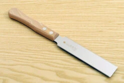 A set of four beautifully accurate Gyokucho Japanese saws. This set will cover crosscutting and sheet materials, ripping and resawing, dovetailing, tenons, fine joinery and flush cutting.Gyokucho razorsaws, the original replaceable blade Japanese saws, have long been renowned for their cutting efficiency and excellent durability. The latest generation of Gyokucho saws have blue handles made from TPE (thermoplastic elastomer) a remarkable material that is simultaneously hard and resilient yet feels velvety to the touch and affords a superb grip. Rest assured that TPE is an eco-friendly alternative to rubber, and isn’t harmful to the environment as it is completely recyclable. Gyokucho 400 TPE Proton Power Saw Ibarame Kataba 240mmThe Gyokucho 400 Ibarame Kataba has quite a stiff blade and 13 crosscut teeth per inch. This reasonably aggressive saw is excellent for crosscutting timber to length, making square or angled cuts for larger scale joinery and is also a great choice for zipping through panels in solid timber, sheet goods, veneered ply and composites.It leaves a smooth surface and almost no breakout on the exit side. The stubby spine provides a little extra support for the blade whilst still allowing deep cuts to be made.Blade length 240mmOverall length 550mmBlade thickness 0.6mmPitch 1.9mm / 13 tpiSet 0.125mm per sideMax depth of cut = unlimitedTPE handleReplacement blade = Part No S400Gyokucho TPE 667 Blue Hard Ryoba Komame 240mmAn excellent general purpose saw for the cabinetmaking workshop, the Gyokucho 651 ‘Blue Hard’ Ryoba Komame has progressive rip teeth on one side of the blade and 20tpi crosscut teeth on the other. It has a slightly squarer blade, a thinner plate (0.45mm) and finer teeth than the standard range of Ryoba, making it much better suited to light, accurate work.Blade length 240mmOverall length 580mmBlade thickness 0.45mmBlade depth: 65mm to 82mmCrosscut pitch 1.2mm / 21tpiProgressive rip pitch 2.5mm to 3.9mm / 10 to 6.5 tpiSet 0.125mm per sideMax depth of cut = unlimitedTPE handleReplacement blade = Part No S651Gyokucho TPE 375 Tatebiki (rip) Dovetail Dozuki 240mmThe Gyokucho 375 is a professional dozuki with rip teeth, an accurate saw with a very thin plate and a full length spine it is the equivalent of a western dovetail saw, also capable of performing the cheek cuts of small tenons, bridle joints etc in furniture making. At very fine pitches you can get away with using a rip tooth for occasional crosscutting, albeit not quite as efficient or clean as a crosscut saw.Blade length 240mmOverall length 550mmBlade thickness 0.3mmPitch 1.3mm / 19.5tpiSet 0.125mm per sideMax depth of cut = 45mmTPE handleReplacement blade = Part No S-372 (S-370 and S-371 will also fit this handle and spine)Gyokucho 1151 Double Edged Flush Cutting Saw 125mmFlush cutting saws are delicate precision tools used to trim plugs, dowels, wooden nails and through tenons flush with the surrounding surface.The crosscut teeth of this saw have absolutely no set, so they do not scratch the surface. The blade is only 0.3mm thick and extremely flexible, light pressure with the index finger of your other hand is all that is required to hold the blade down onto the workpiece and achieve a truly flush cut.Blade length 125mmOverall length 270mmBlade thickness 0.3mmPitch 1mm x 1.3mm 25 x 20 tpiSet 0.00mm per sideBeech wood handleNon-replaceable bladeRegular price of these saws if purchased separately: £144.40Here’s an interesting video by David Walton, YouTube’s Unplugged Woodworker, using a Gyokucho TPE Ryoba to cut an arc – starts at 03:33.