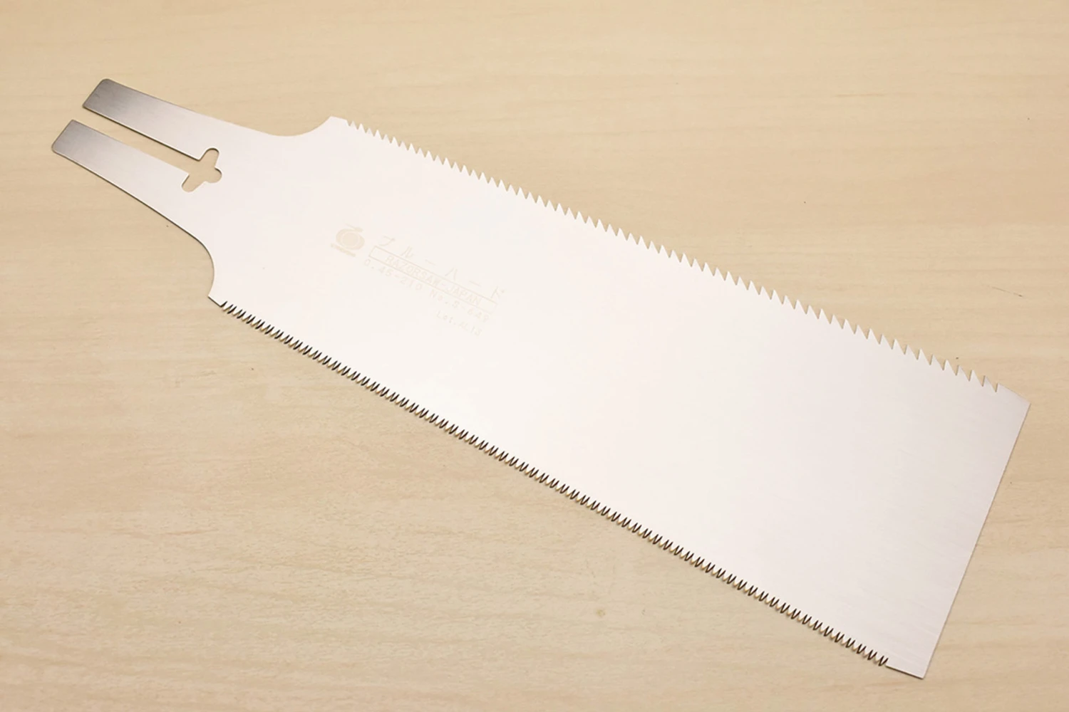Gyokucho S649 210mm replacement blade for TPE Blue Hard Ryoba. Fits Handle for Gyokucho TPE Blue Hard Ryoba – 665, 666, 667 & 668 Blade length: 210mm Blade thickness: 0.45mm Blade depth: 70mm to 90mm Pitch; 1.5mm / 16.9tpi CC Pitch: 3.7 – 2.5mm / 6.9 – 10.2tpi Rip