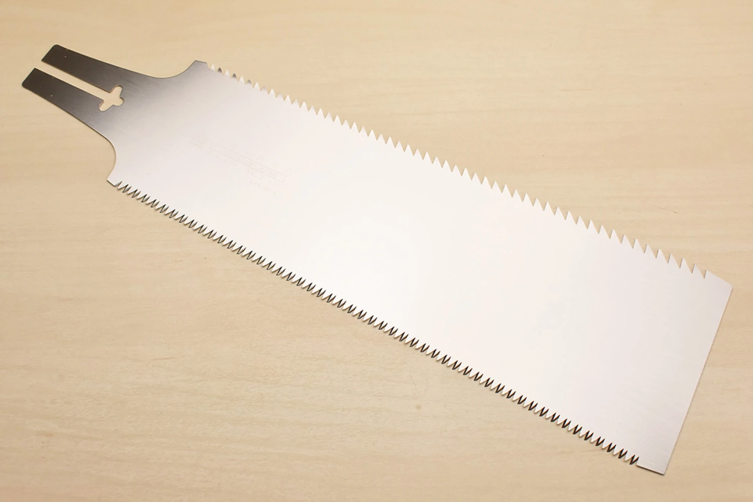 Gyokucho S655 270mm replacement blade for TPE Blue Hard Ryoba. Fits Handle for Gyokucho TPE Blue Hard Ryoba – 665, 666, 667 & 668 Blade length: 270mm Blade thickness: 0.6mm Blade depth: 79mm to 97mm Pitch; 2.5mm / 10.2tpi CC Pitch: 5.6 – 3.8mm / 4.5 – 6.7mmtpi Rip