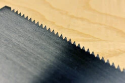 The ultimate smooth cutting experience.Handmade Japanese saws are the product of a highly evolved form of blacksmithing. The blades are forged flat and tensioned by hand, if you look closely you may still be able to see tiny hammer marks in the blade surface. After through hardening, the blades are scraped to selectively taper the blade away from the tooth line. The teeth are filed and sharpened by hand and the resulting cutting action is nothing short of exquisite.These are tools that need to be used gently, with care and respect. Once you are comfortable using replaceable blade saws and can use them with calm confidence and accuracy, these are the next logical progression.Our handmade Japanese saws are made by Hishika in Miki city and have been produced using traditional techniques but with western woodworkers in mind, the teeth are shaped and hardened to suit the tasks of cutting furniture sized dovetails and tenons in European hardwoods.Handmade 240mm Japanese Dozuki Saw for hardwood dovetailing This saw has been filed and heat treated appropriately for use in small section mild hardwoods for dovetailing and other light joinery tasks, the teeth are filed for ripping down the grain. Blade length: 240mm Blade thickness: 0.23mm ish (spine), 0.29mm ish (toothline), 0.9mm (tang) 25tpi Set 0.05mm per side Overall length: 605mm Maximum depth of cut 50mm Handmade 240mm Japanese Ryoba Saw for hardwood This saw has been filed and heat treated for use in mild hardwoods – excellent for precision stock preparation and larger furniture joints like tenons, bridles and lap joints. Blade length: 240mm Blade thickness: 0.40mm ish (centre), 0.50mm ish (toothline), 1.1mm (tang) 16tpi (crosscut), 9 to 6tpi progressive (rip cut) Set 0.15mm per side Overall length: 610mm Maximum depth of cut 65mm Note: These handmade saws are not for beginners and are more suited to the experienced user. Our lifetime warranty does not apply to broken/damaged saw blades.Regular price of these saws if purchased separately: £197.00