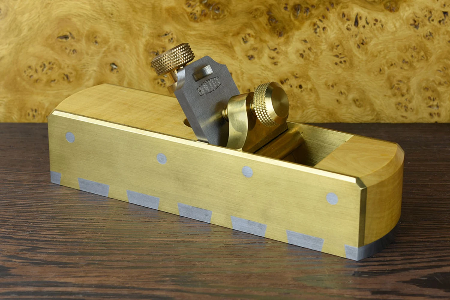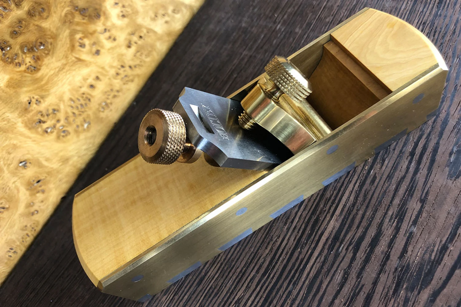 Constructed in gunmetal and steel, double dovetailed together and in this example stuffed with a beautiful rippled boxwood infill, this delightful little plane will usually be the last one to touch a project, creating the all-important finished surface.Designed to help cabinetmakers and instrument makers to achieve a flawless surface on burr, crotch, exotics and other difficult timbers, the 11SA has a reversible blade giving effective pitches of 59 degrees for very high angle smoothing, or 89 degrees, in the fascinating but rarely explored area just before the boundary between planing and scraping.This plane is in mint condition, it has never been honed or used. It has been very gently cleaned (no abrasives) and protected with VanGuard corrosion inhibiting oil on the metal surfaces and Alfie Shine on the wooden infill. Length 6⅝” Blade Width 1½” Width 1¹13⁄16″ This is a pre-owned item not covered by our Lifetime warranty – please see Terms and Conditions.