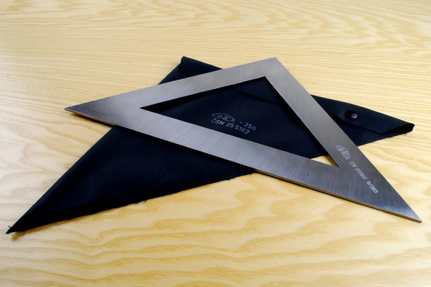 Kinex engineers’ draughting squares are milled from 3mm thick steel plate with precision ground edges.A more reliable, durable and accurate alternative to plastic squares.250mm sides, 353.5mm hypotenuse. Compatible with the Kinex engineers’ steel protractor.