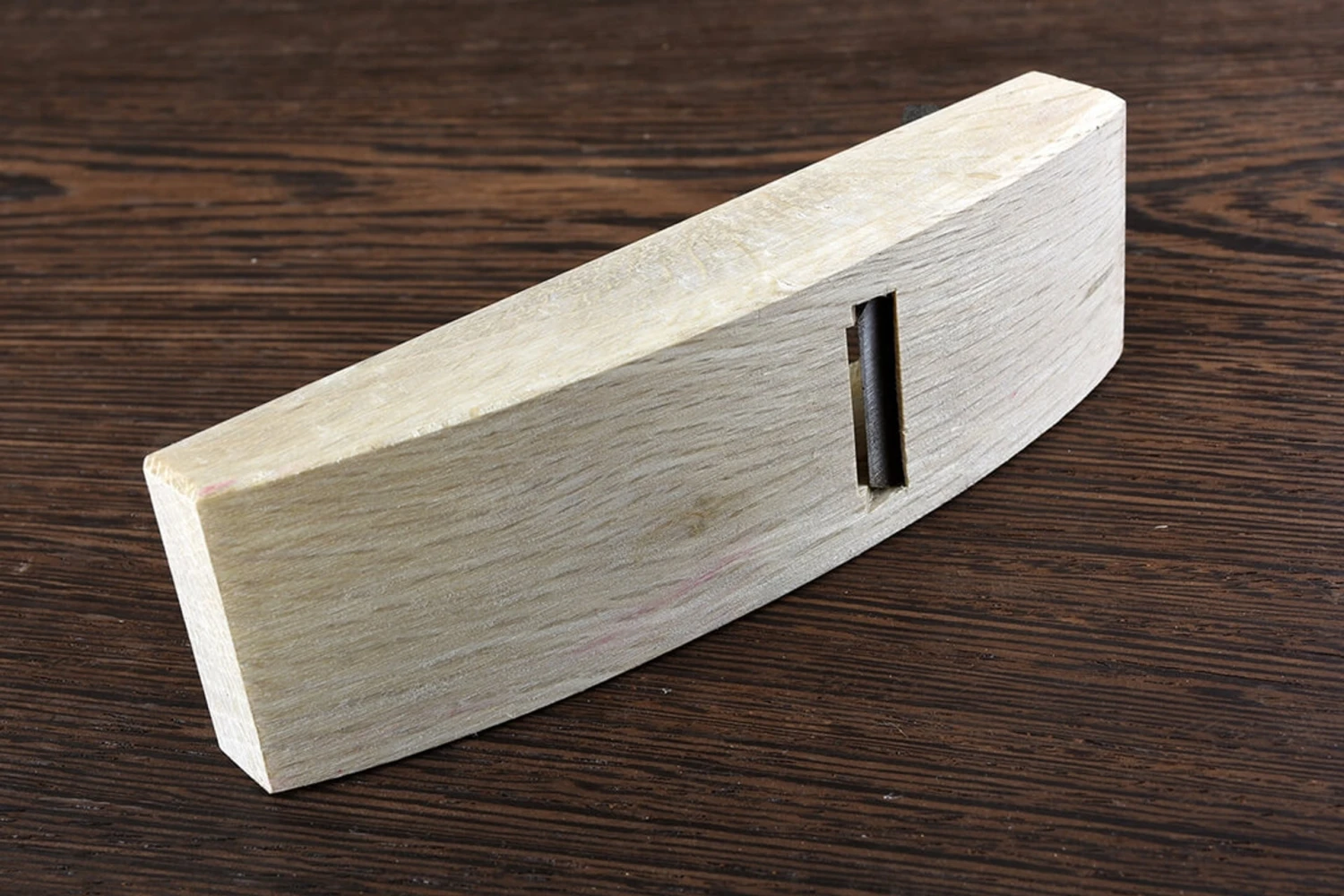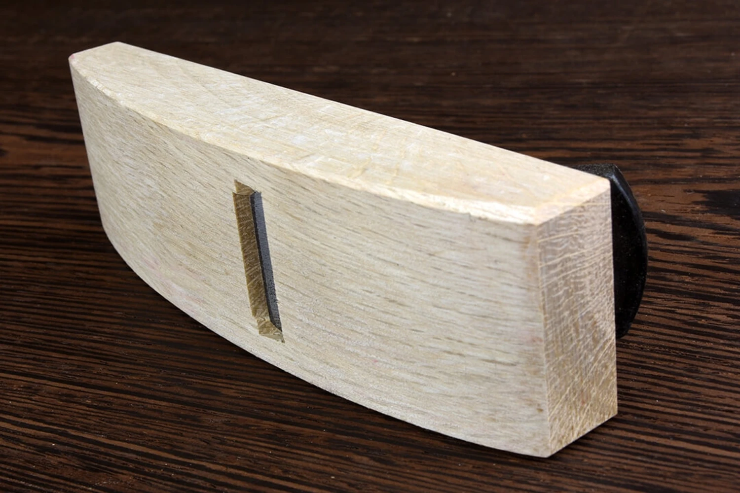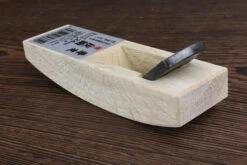 A straight bladed compass plane, for smoothing and fairing concave edges up to and including its own radius (approximately 200mm).The 24mm wide blade is shouldered, giving a cutting edge of 20mm width. Typically used for shaping the underside of aprons and rails to lighten the appearance of a piece.Body length: 120mmBody width: 36mmBlade width: 24mmEdge Width: 20mmThis is an excellent series of videos by Sumokun that explains the process of setting up a Kanna in English (watch the first video, then the third, then the second).
