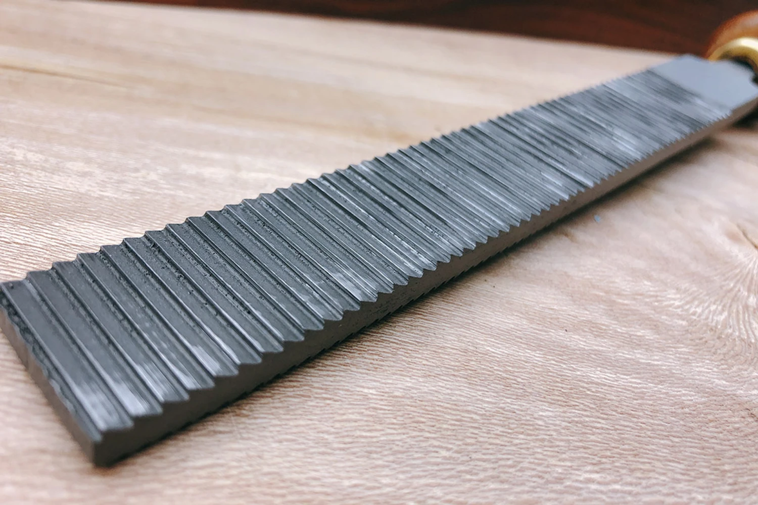 The Liogier combination float has 3mm perpendicular teeth on one face and 2mm fleam cut teeth on the other, giving coarse and fine options in one tool.Woodworking floats are fitting and finishing tools for endgrain, they are most commonly associated with the crafts of the of the stocker and the plane maker, although anyone who finely adjusts end grain surfaces for a precision fit is likely to find them indispensable.Like their relatives the scraper and the rip saw, floats work best on long grain or end grain; for similarly controlled cuts across the grain, paring chisels are usually the tool of choice.Floats can be designed to cut on either the push or the pull stroke, push stroke is more common and easier to use, but if you need to work inside a blind pocket where access is limited, the value of a pull float becomes self-evident.Each handmade Liogier woodworking float comes pre-sharpened ready for use, they can be re-sharpened using a fine saw file. The 4mm thick floats allow a tiny amount of flex, the 6mm thick variants are rigid.150mm long x 24mm wide x 6mm thickPush version both sides
