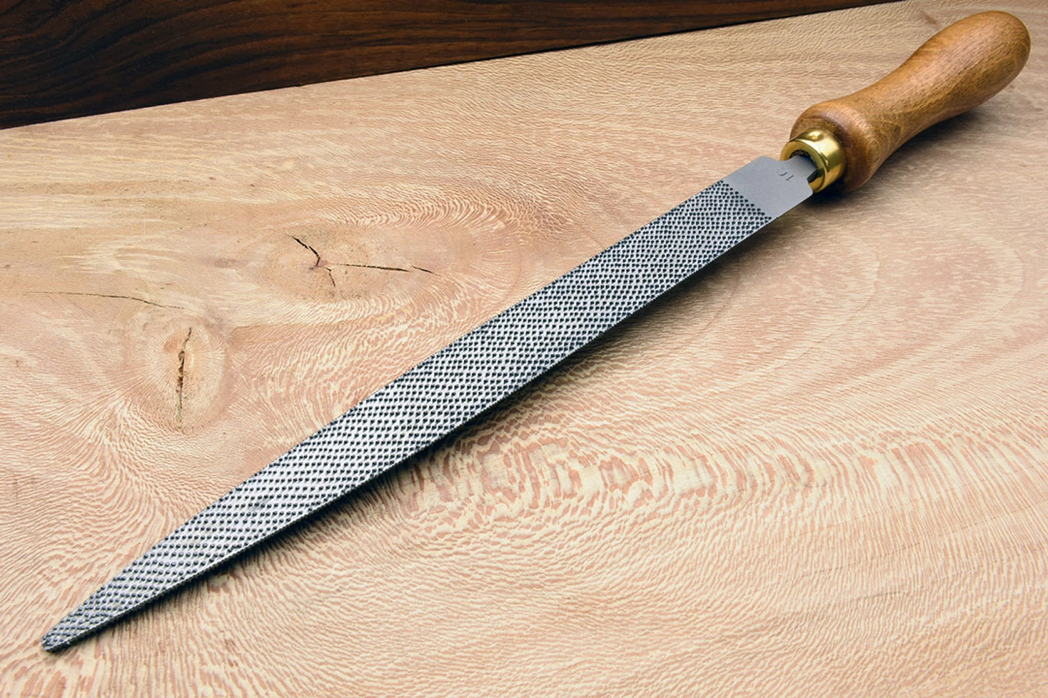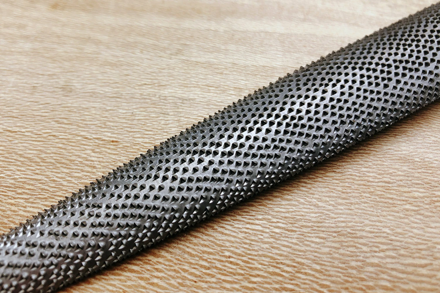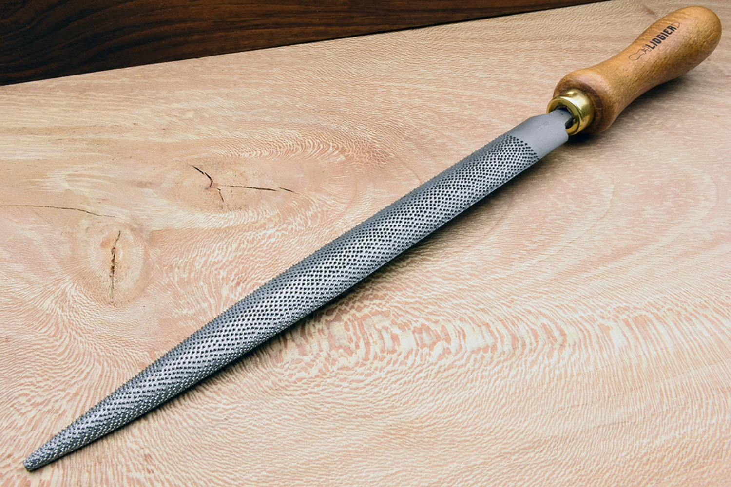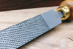 Modellers rasps are named for modélistes (pattern makers), also known as effilé (slender), they are unsurprisingly a slender halfround rasp traditionally favoured by patternmakers. The profile is a little bit narrower and fatter than a halfround, and quite a lot narrower and fatter than a cabinet rasp. They are lovely for creating tight radius roundovers where shapes meet, as you would when blending out any sharp corners in a casting that might provide origins for cracks in the metal as it cools. The key to a Liogier rasp’s performance is in the craftsmanship, meticulously perfecting each stage before moving on to the next. The blanks are beautifully forged, ground and polished before a stitcher even gets near them. The blank is treated with ever increasing reverence as more time is invested in it, and when the lengthy stitching process is complete, it goes on to the transformational stage of heat treatment where the crystalline structure of the steel is carefully reset into a hard, tough, and above all wear resistant material. Before it can receive it’s plump, narrow waisted beechwood handle, proudly marked with the Liogier logo, the newly created tool is gently wafted with compressed air and ground walnut shells to gently clean the steel to a smooth matte surface. The rasp is now ready to enter service with it’s new owner. It is important to keep your rasps free of wood debris that can attract and hold moisture against the surface. A brass bristled brush is the ideal tool for cleaning the teeth, for greater protection we highly recommend storing in an enclosed space with an open pot of Shield Technology ToolGuard VCI. Diameter: 20mm Thickness 5mm Grain No. 10