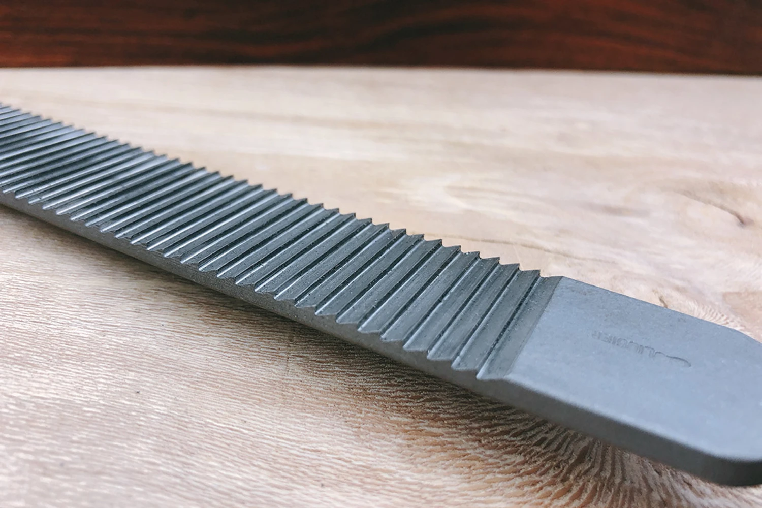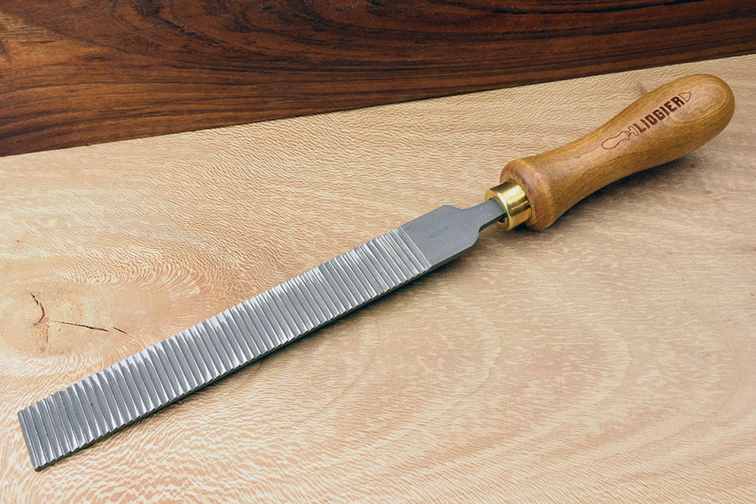 Woodworking floats are fitting and finishing tools for endgrain, they are most commonly associated with the crafts of the of the stocker and the plane maker, although anyone who finely adjusts end grain surfaces for a precision fit is likely to find them indispensable.Like their relatives the scraper and the rip saw, floats work best on long grain or end grain; for similarly controlled cuts across the grain, paring chisels are usually the tool of choice.Floats can be designed to cut on either the push or the pull stroke, push stroke is more common and easier to use, but if you need to work inside a blind pocket where access is limited, the value of a pull float becomes self-evident.Each handmade Liogier woodworking float comes pre-sharpened ready for use, they can be re-sharpened using a fine saw file. The 4mm thick floats allow a tiny amount of flex, the 6mm thick variants are rigid.180mm long x 25mm wide x 4mm thickPull version