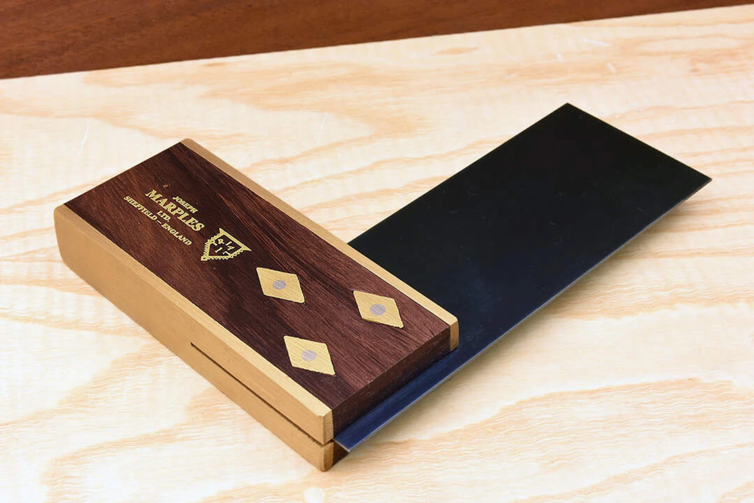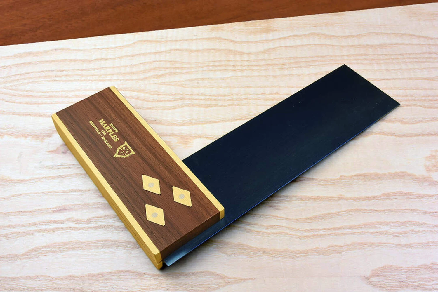 Handmade in Sheffield by Joseph Marples, these beautifully made brass bound rosewood try squares are part of Marples’ Trial 1 range of 70 year old designs. It has a hot blued steel blade secured with three diamond brass washers and steel rivets.Each square is tested for accuracy on both the inside and outside faces during manufacture and again before despatch to us. Marples own specification for the internal angle is twice that specified in the British Standard i.e.; better than 0.01mm/10mm blade length and with the solid brass edges – accuracy is ensured.Carpenter’s try squares are designed for squaring across sawn boards in preparation for sawing to length. Because the outcome can only be as good as the sawn surface that the stock is registered against, there is a limit to how much accuracy is relevant and this is reflected in the standard.Conforms with British Standard 3322 specification for carpenters’ squares and bevels.size (in)Inside blade length (in)Overall length (in)Stock length (in)445½4666½4½99116¼1212148