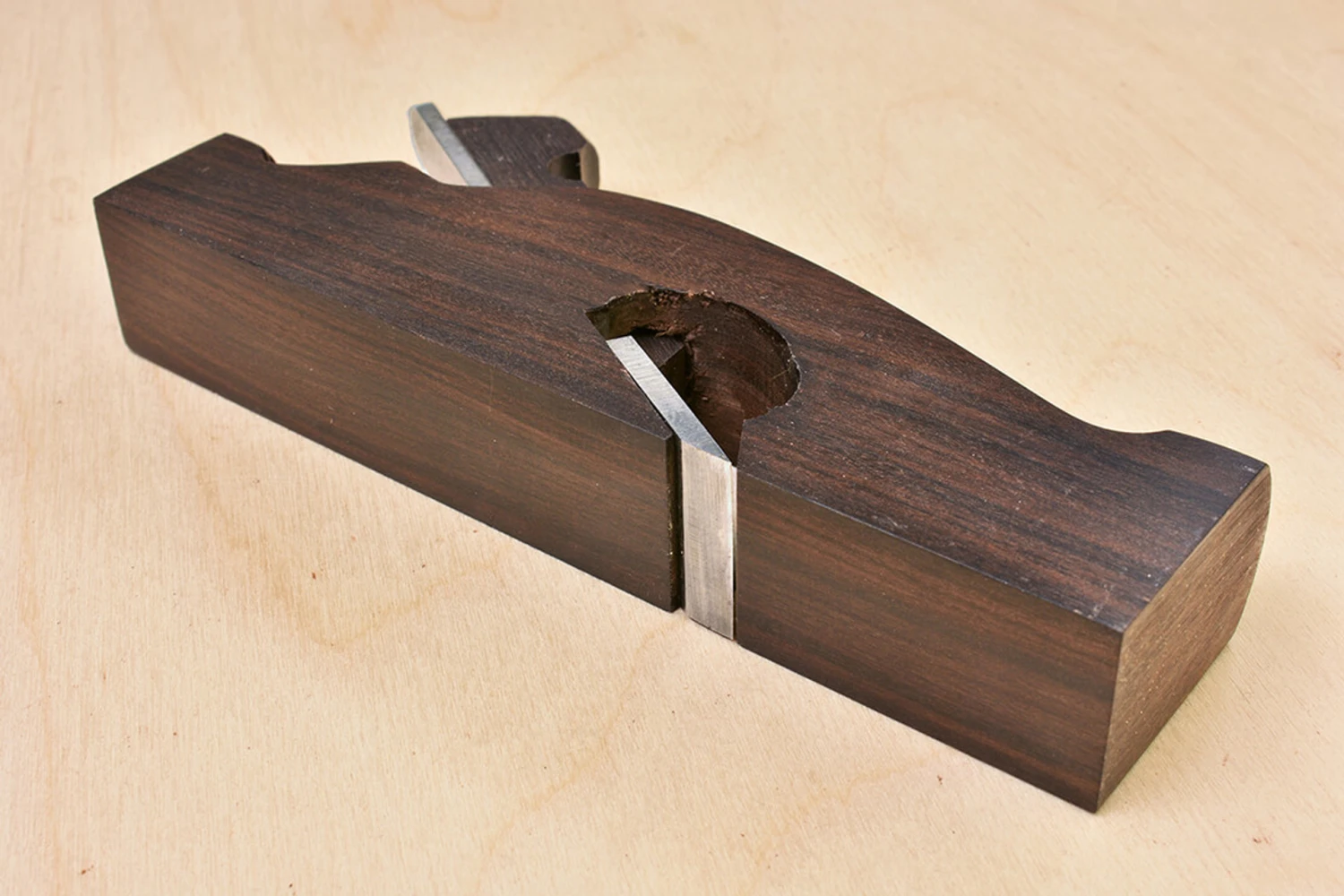 Made to a traditional British design, this beautiful Mujingfang rebate (rabbet) plane is handmade in Hong Kong from a single piece of fine grained ebony. The cutting iron is made from forged carbon steel, hardened and tempered to RC58 and secured with an individually fitted and numbered wooden wedge. Sole: 150mm x 24mm Blade: 25mm – fractionally wider and tapered in its width so that it can be set flush to either side.