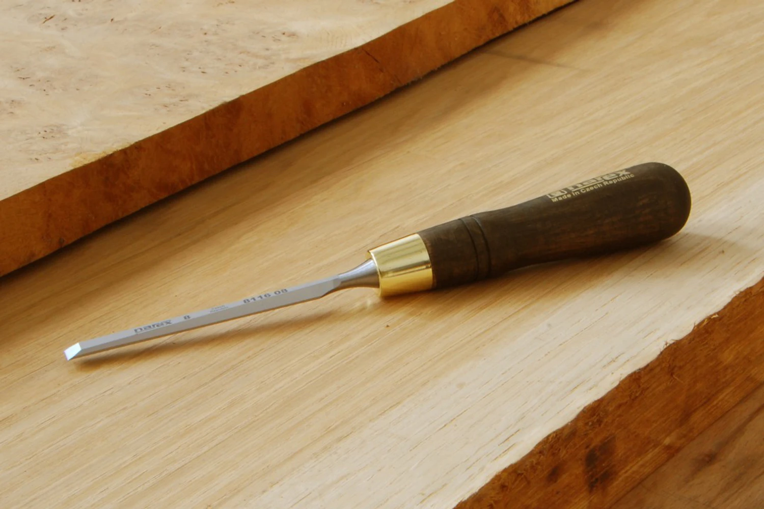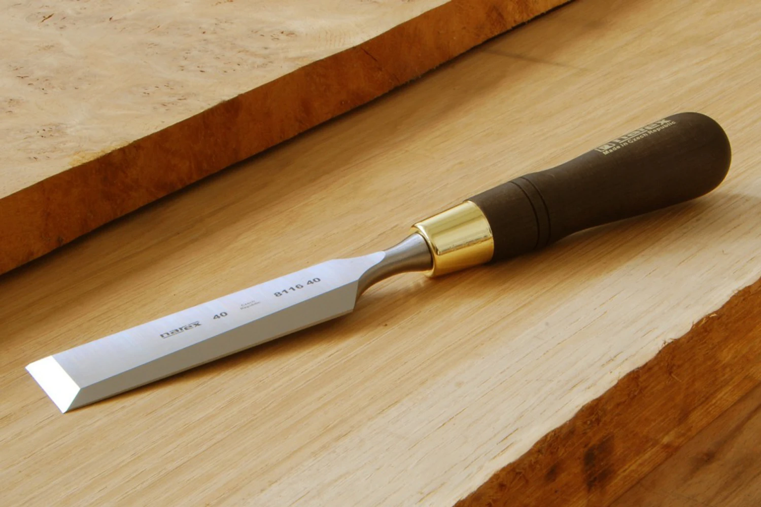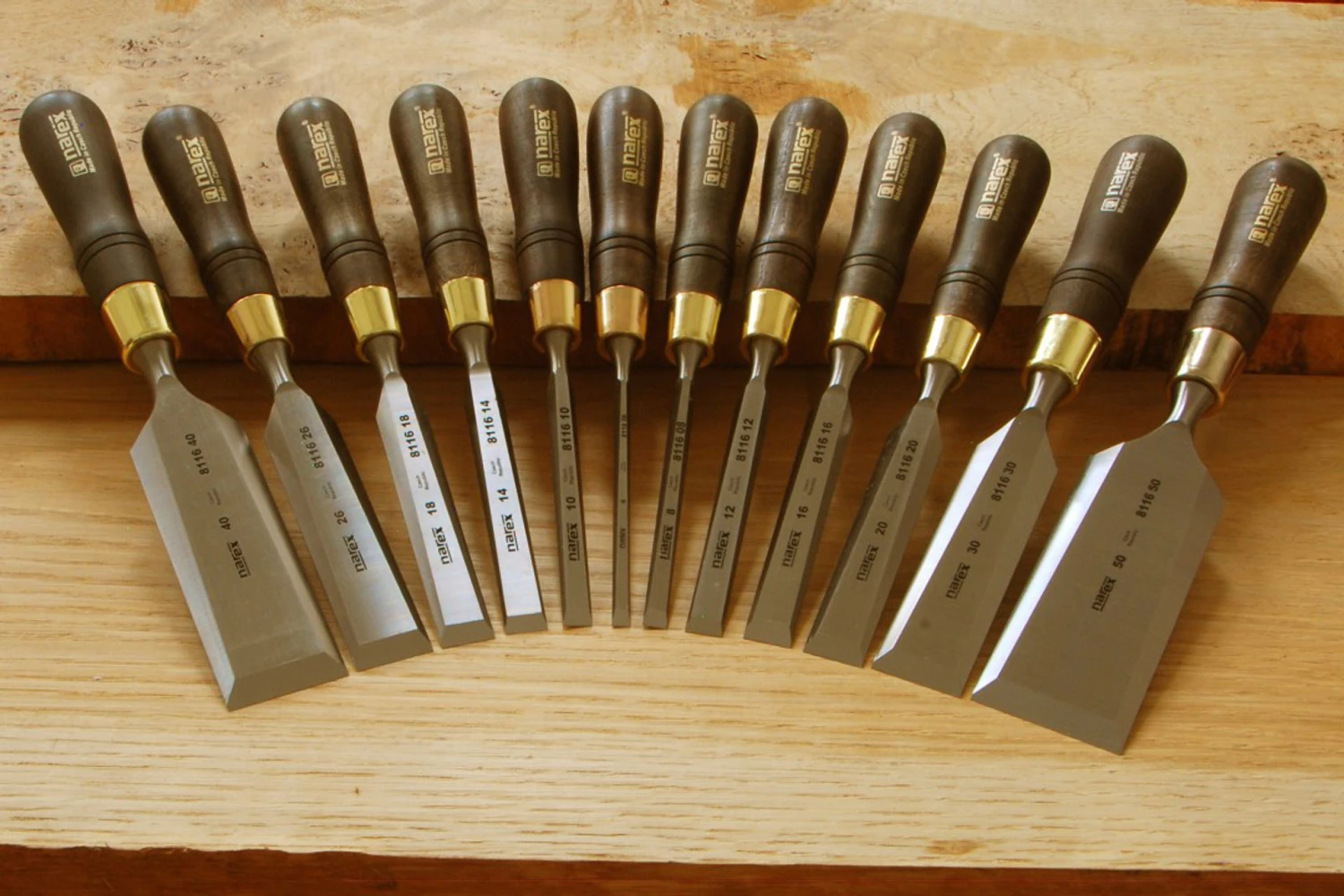 The set of 12 includes 6, 8, 10, 12, 14, 16, 18, 20, 26, 30, 40 & 50mm chisels Overall length: approx 280mm (11″) Blade length: approx 100mm (4″) Regular price of these items if purchased separately: £244.10 The 8116 series of Narex chisels are accurately ground, affordable, Cabinetmaker’s chisels with fine edges and close tolerance backs. Narex forge the chisel blades from Chrome Manganese (CrMn) spring steel and isothermally harden it to produce a very even and consistent bainitic structure at RC59 +/-1. In use, Chrome Manganese steel delivers similar performance to carbon steel but is more efficient to produce. The 8116 cabinetmaker’s Narex chisels have shouldered teardrop hornbeam handles. They will withstand taps from a mallet without the surface becoming marred and uncomfortable to use when paring. The handles are lightly stained to protect the timber whilst retaining its natural feel.