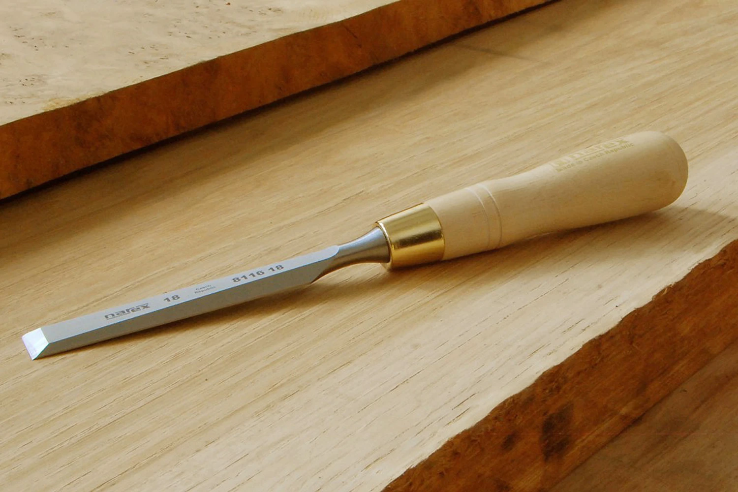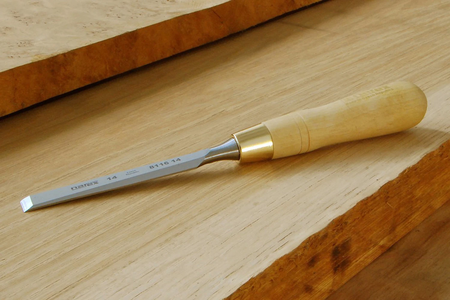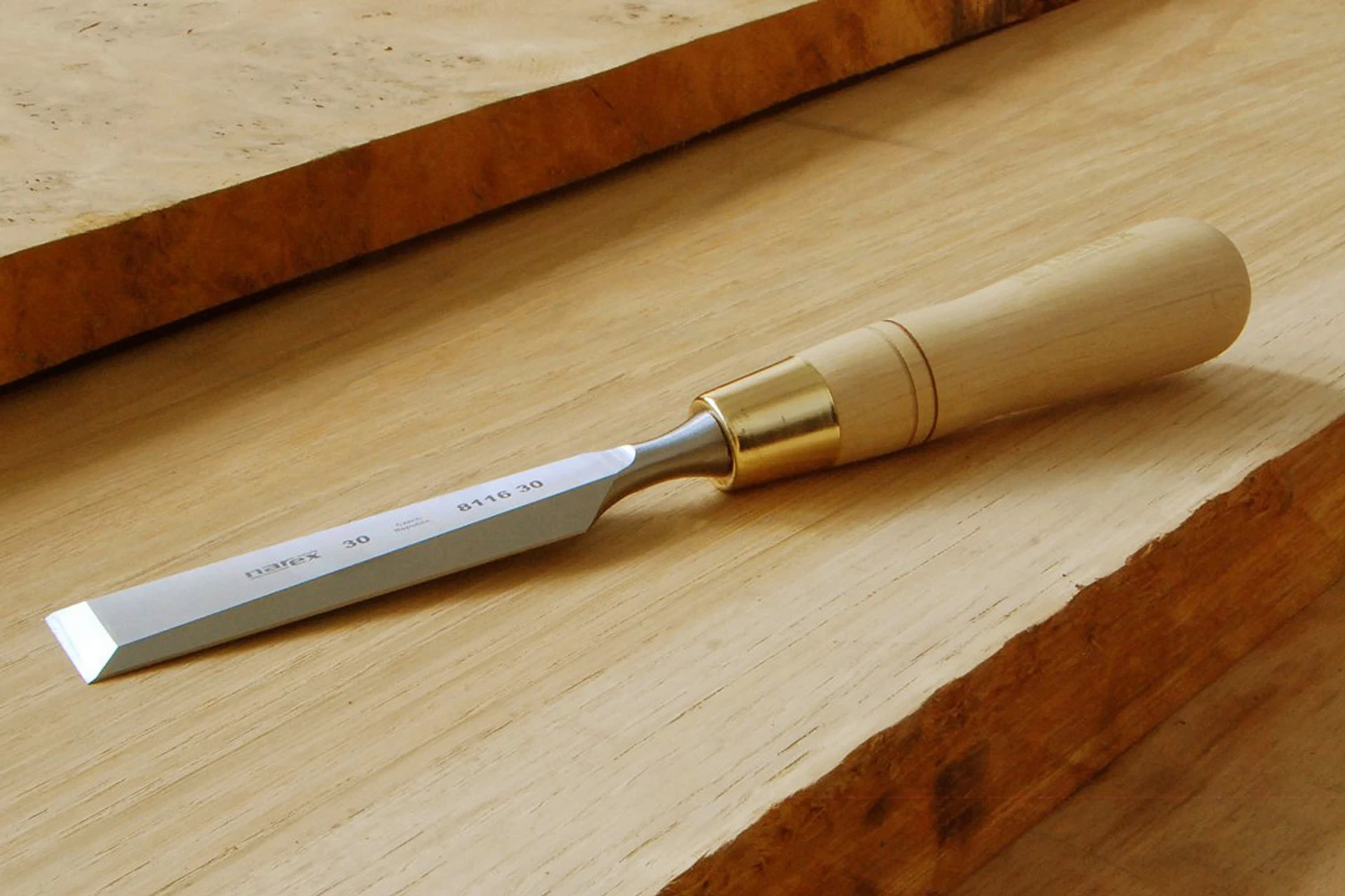 The set of 12 includes: 6, 8, 10, 12, 14, 16, 18, 20, 26, 30, 40 & 50mm chisels Overall length: approx 280mm (11″) Blade length: approx 100mm (4″) Regular price of these items if purchased separately: £262.10 The 8116 series of Narex chisels are accurately ground, affordable, Cabinetmaker’s chisels with fine edges and close tolerance backs. Narex forge the chisel blades from Chrome Manganese (CrMn) spring steel and isothermally harden it to produce a very even and consistent bainitic structure at RC59 +/-1. In use, Chrome Manganese steel delivers similar performance to carbon steel but is more efficient to produce. The 8116 cabinetmaker’s Narex chisels have shouldered teardrop hornbeam handles. They will withstand taps from a mallet without the surface becoming marred and uncomfortable to use when paring. The hornbeam handles are lightly waxed to protect the timber whilst retaining its and natural colour and feel.