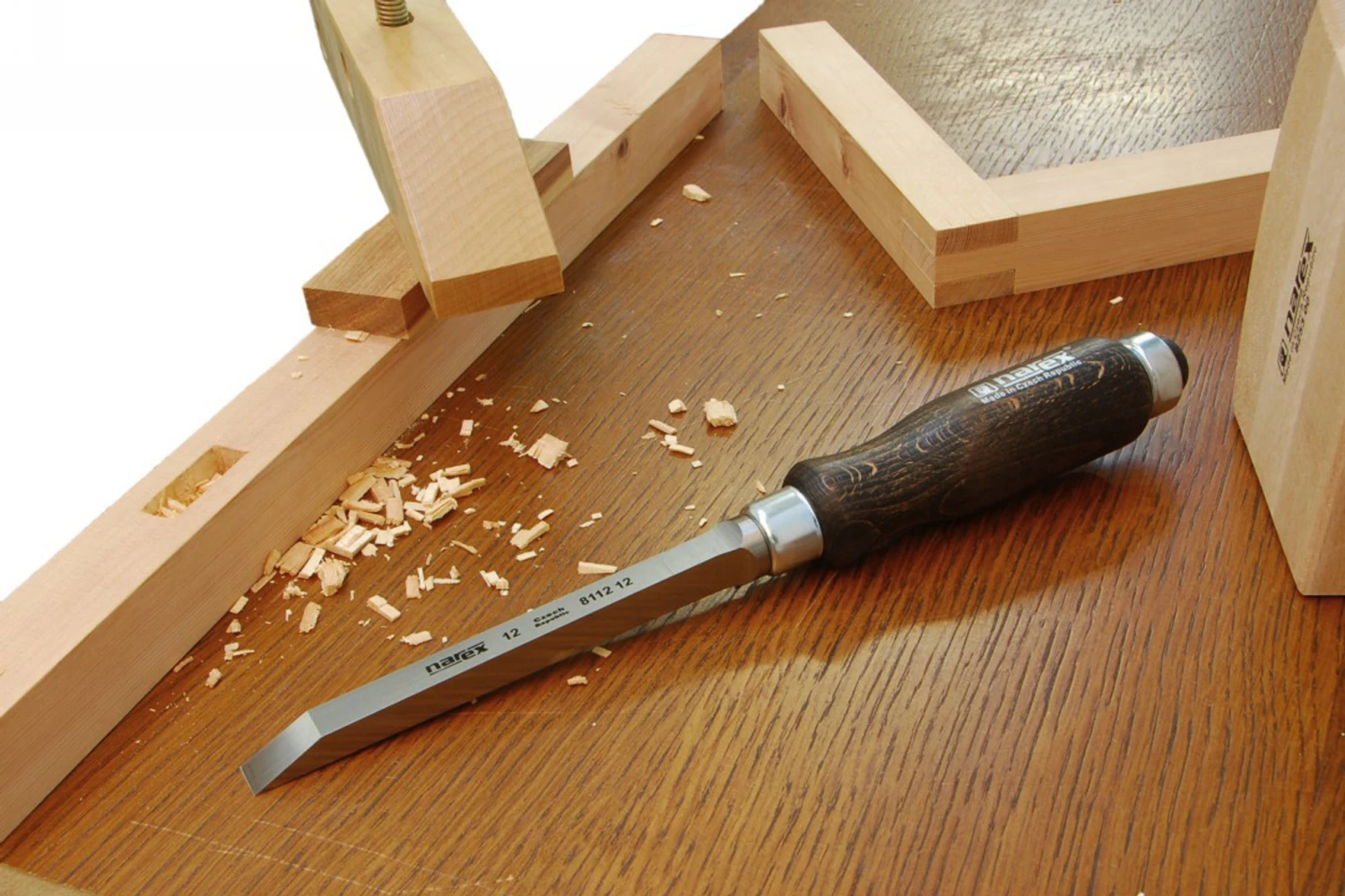 Handle: Stained beech with chromed steel ferrules. Overall length: approx 300mm Blade length: approx 145mm The chisel blades of these 8112 Narex mortice chisels are correctly trapezoidal in section and have been neatly CNC machined from Chrome Manganese (CrMn) spring steel, which was developed for Narex specifically for the purpose of making edge tools. This means that Narex mortice chisels take and hold a superb edge. The Narex 8112 mortice chisels are accurate, hard and immensely tough: serious tools and seriously good value for money