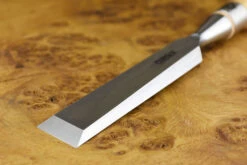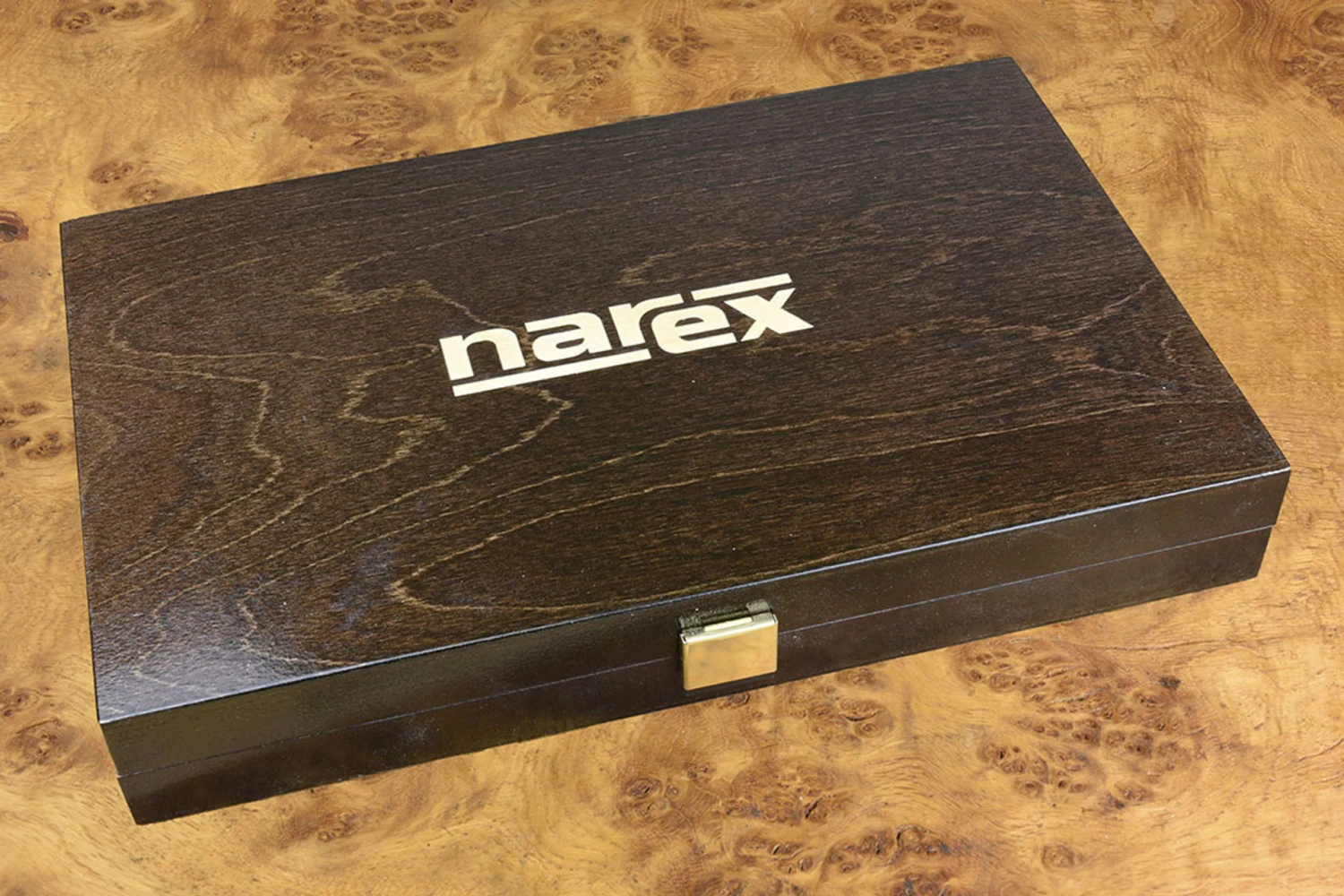 Set includes: 6mm (¼”) 10mm ( ⅜”) 13mm ( ½”) 19mm (¾”) 25mm (1″) Named after the founder of Narex Bystrice, Vaclav Richter, and launched to celebrate the centenary of his company, these superb bevel edged chisels bring Narex’s signature blend of high quality and low price through clever engineering to the super premium end of the chisel market. Made from a new type of steel alloyed with chromium for hardenability and vanadium for grain reduction and enhanced toughness, the steel is heat treated using a cryogenic process to maximise the formation of the desirable martensite crystalline microstructure in the finished steel. In layman’s terms, it’s proven technology mastered to the extent that it can compete with the latest powder metallurgy steels for performance, but at a much keener price point. In use, the new Narex steel has slightly less stone drag than Narex’s familiar CrMn (which is one of the nicest of all steels to sharpen) so it’s pretty close to O1 and PMV11 for ease of sharpening. Edge taking is up there with the very best of them – to the extent that going through the extra grades really pays dividends. But the biggest change is absolutely astonishing edge retention, this stuff takes absolutely ages to show even the slightest hint of dulling and can be brought back to mouth-watering sharpness in moments. The fine grinding is so good it’s almost a mirror finish – on all surfaces, there is no undesirable rounding off of the underside of the edges. The backs of the chisels are almost optically flat, so for the first time ever I would recommend doing nothing to them in preparation and maintenance, just wipe off the wire edge on a soft strop. The edges are as fine as hand ground chisels, barely there at all, making them suitable for the finest precision joinery. The chisels are fitted with traditional pattern handles from Mr Richter’s time, made from ash for lightness and strength, extremely smoothly finished and secured with a split-proof ground steel ferrule bearing the Richter logo and smartly trimmed with a thin leather bolster. The chisels are supplied in a beautiful presentation gift box and lightly coated with corrosion inhibiting oil to ensure that they reach you in perfect condition.