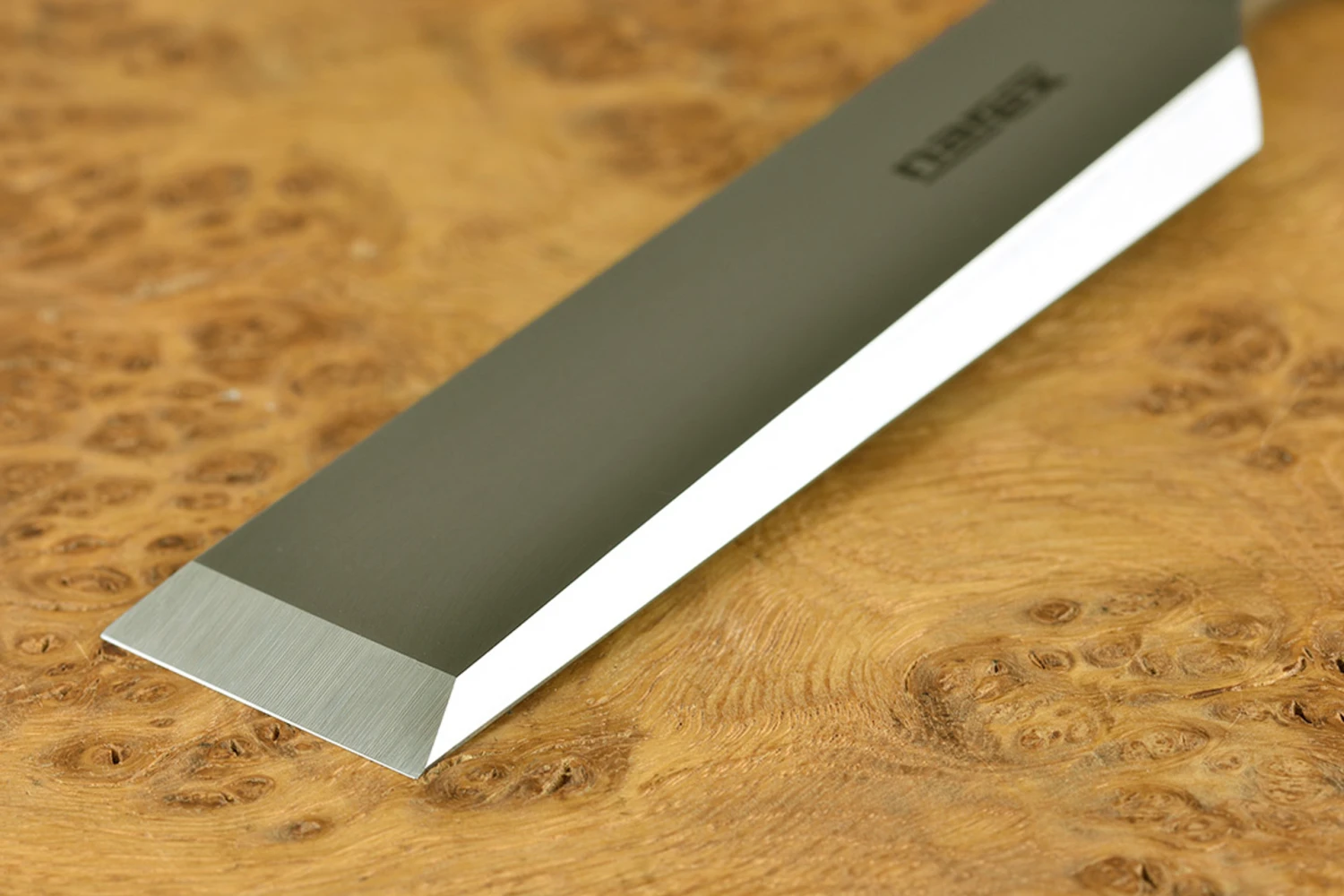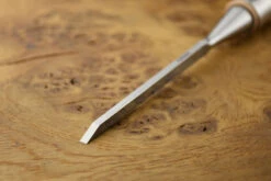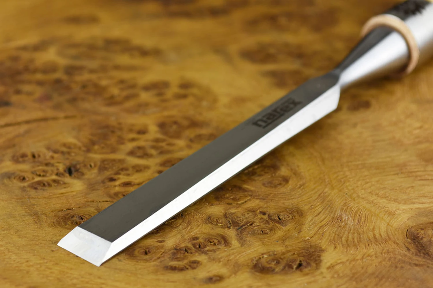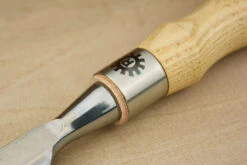 Named after the founder of Narex Bystrice, Vaclav Richter, and launched to celebrate the centenery of his company, these superb bevel edged chisels bring Narex’s signature blend of high quality and low price through clever engineering to the super premium end of the chisel market. Made from a new type of steel alloyed with chromium for hardenability and vanadium for grain reduction and enhanced toughness, the steel is heat treated using a cryogenic process to maximise the formation of the desirable martensite crystalline microstructure in the finished steel. In laymans terms, it’s proven technology mastered to the extent that it can compete with the latest powder metallurgy steels for performance, but at a much keener price point. In use, the new Narex steel has slightly less stone drag than Narex’s familiar CrMn (which is one of the nicest of all steels to sharpen) so it’s pretty close to O1 and PMV11 for ease of sharpening. Edge taking is up there with the very best of them – to the extent that going through the extra grades really pays dividends. But the biggest change is absolutely astonishing edge retention, this stuff takes absolutely ages to show even the slightest hint of dulling and can be brought back to mouthwatering sharpness in moments. The fine grinding is so good it’s almost a mirror finish – on all surfaces, there is no undesirable rounding off of the underside of the edges. The backs of the chisels are almost optically flat, so for the first time ever I would recommend doing nothing to them in preparation and maintainance, just wipe off the wire edge on a soft strop. The edges are as fine as hand ground chisels, barely there at all, making them suitable for the finest precision joinery. The chisels are fitted with traditional pattern handles from Mr Richter’s time, made from ash for lightness and strength, extremely smoothly finished and secured with a splitproof ground steel ferrule bearing the Richter logo and smartly trimmed with a thin leather bolster.