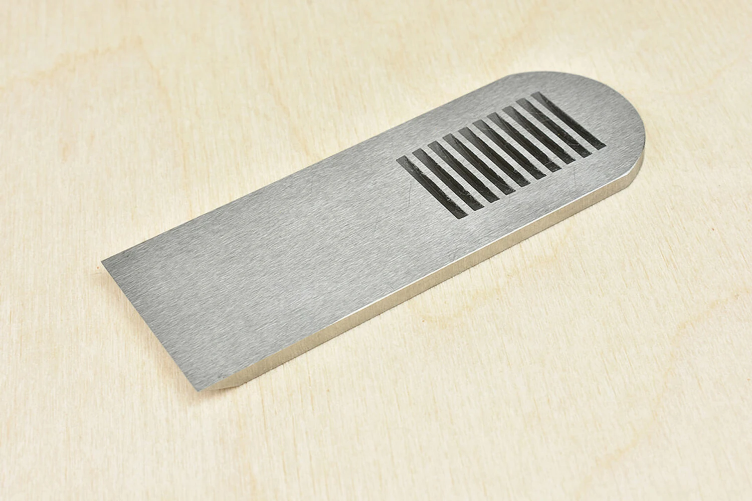 3mm thick T10 apron plane iron hardened to RC60-63 to fit the Quangsheng Luban No.102 Apron Plane.Supplied with the standard bevel angle of 25 degrees.Overall Length: 90mm (3.54″ approx)Width: 32mm (1.25″ approx)Thickness: 3.23mm (1.27″ approx)Please note that we are unable to ship Quangsheng products to North America due to retail exclusivity restrictions.