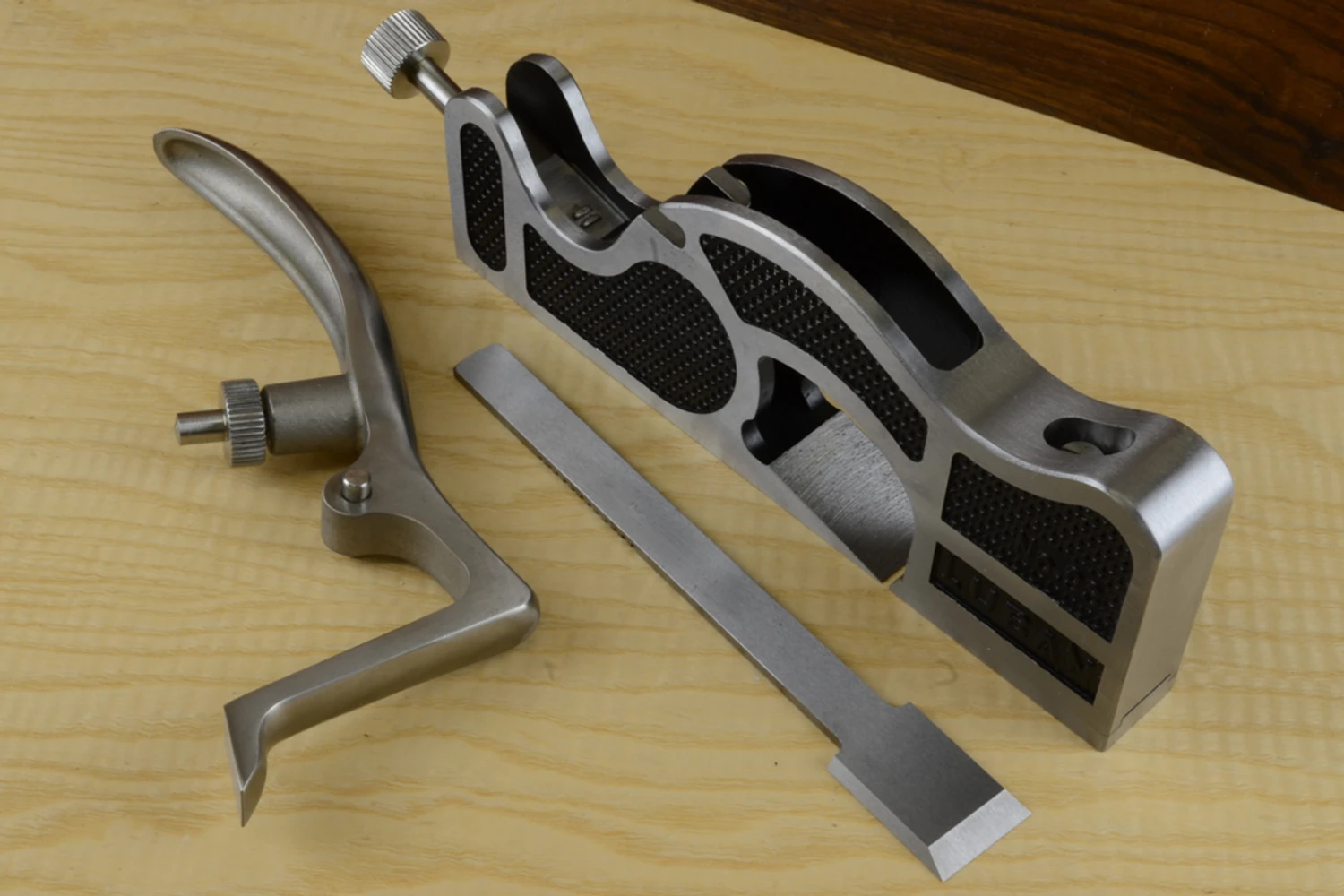 The Quangsheng Large Shoulder Plane is a broader heavier version of the other Quangsheng shoulder planes. Like its siblings it has an adjustable mouth and a super smooth Type 3 adjustment mechanism similar to those found on the current model block planes.8¼” long and 1″ wide the large shoulder plane tips the scales at 1.8Kg or just over 4lbs. The body is cast from CR40 steel and precisely ground for squareness and truth. The swan neck lever arm is cast stainless steel.Shoulder planes are used for finishing and fine tuning the mating surfaces of joints. They are not really a core tool (although you do need at least one plane in your arsenal that can reach into the corner of a joint) but rather one that you invest in when you are ready to take the quality your work to the next level.The additional mass of a large shoulder plane provides excellent registration to the batten, corresponding joint surface or planing block, so although they feel huge when you first pick them up, for many applications they are easier to use than a small or medium sized tool. Please note that we are unable to ship Quangsheng products to North America due to retail exclusivity restrictions.