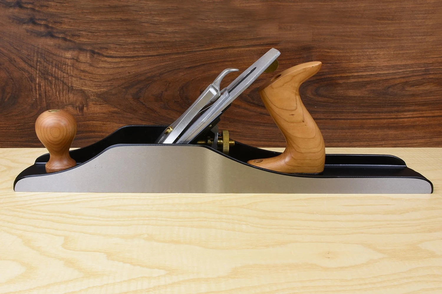 The Quangsheng No.6 fore plane is the most manageable of the three types of long flattening planes. Popular with furniture makers it is a nicely sized workhorse for dressing and squaring stock accurately to dimension.The name ‘fore plane’ originates from an earlier application where this size of plane would have been used be’fore’ the others for the cruder task of levelling off boards that had been riven (split) and then hewn with axes and adzes. In modern usage it would be more appropriate to think of it as smaller, more nimble version of the ‘try’ ‘trying’ or ‘truing’ plane.Quangsheng bedrock pattern handplanes, unlike the more common Bailey pattern, have a full contact area between the body and the frog, hence the name ‘bedrock’. The frog can also be adjusted to widen or narrow the mouth of the plane without the need to remove the irons. Simply loosen the two locking screws on either side at the back of the frog, adjust the central screw to set your desired mouth opening and then nip up the side screws again. This system is easier, faster, much more accurate, and less likely to damage the cutting edge.Specifications: Precision ground, unbreakable CR40 alloy steel casting. Engineered lateral adjuster with guide bearing and brass tab. Low profile cap iron. Brushed finish stainless steel lever cap. Hardwood handles. Conforms to British Standard. Sole Dimensions 17¾in x 2⅞in (451mm x 72mm) ⅛in (3mm) thick 2⅜in (60.3mm) cutting iron made from T10 carbon steel hardened to RC63. Please note that we are unable to ship Quangsheng products to North America due to retail exclusivity restrictions.