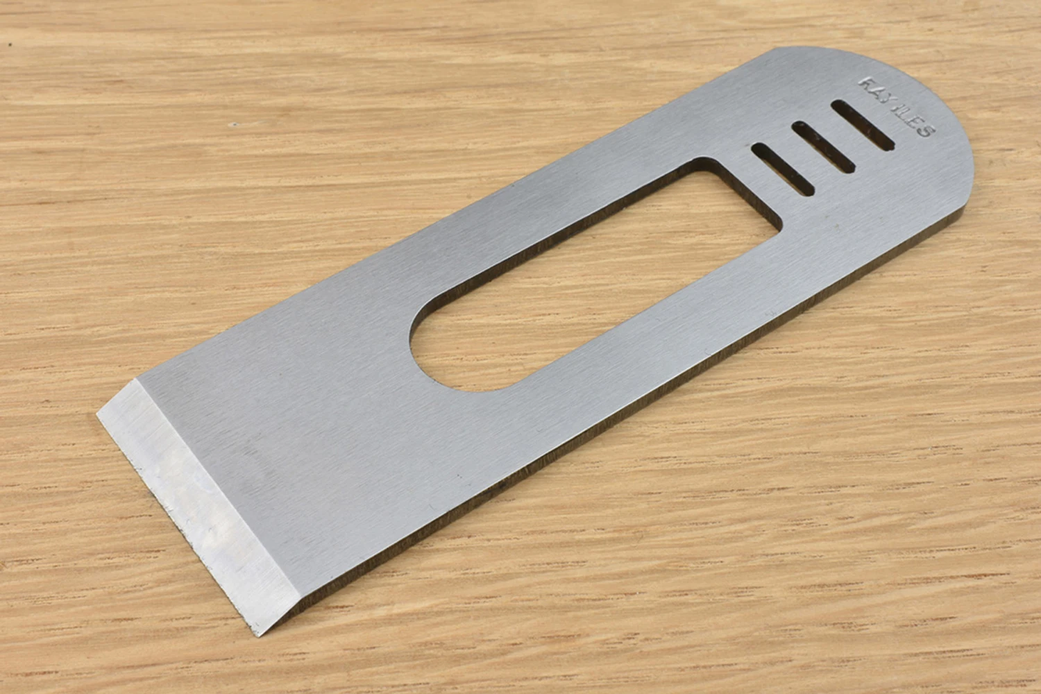 Ray Iles RI003M 36mm block plane iron fits late model Stanley No.60½ block planes and equivalents. 3mm thick O1 carbon steel hardened to RC59-61 30 degree primary bevel