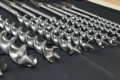 An excellent full set of 13 hand forged and ground Jennings pattern auger bits, sizes 1/4″ to 1″ by sixteenths. A little bit of cosmetic damage on the flutes of the 13/16″ just behind the tip, but other than that very good throughout. Supplied in a new, British made 18 pocket auger roll with a new double ended auger bit file. These auger bits are pre-owned and not covered by our Lifetime Warranty – please see Terms and Conditions.