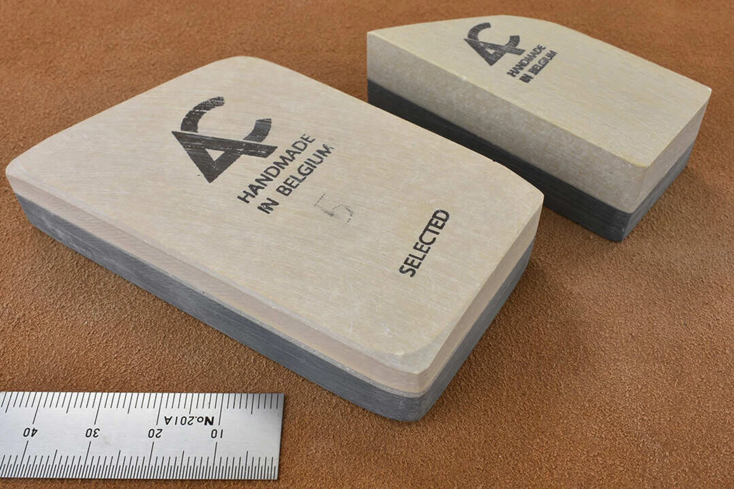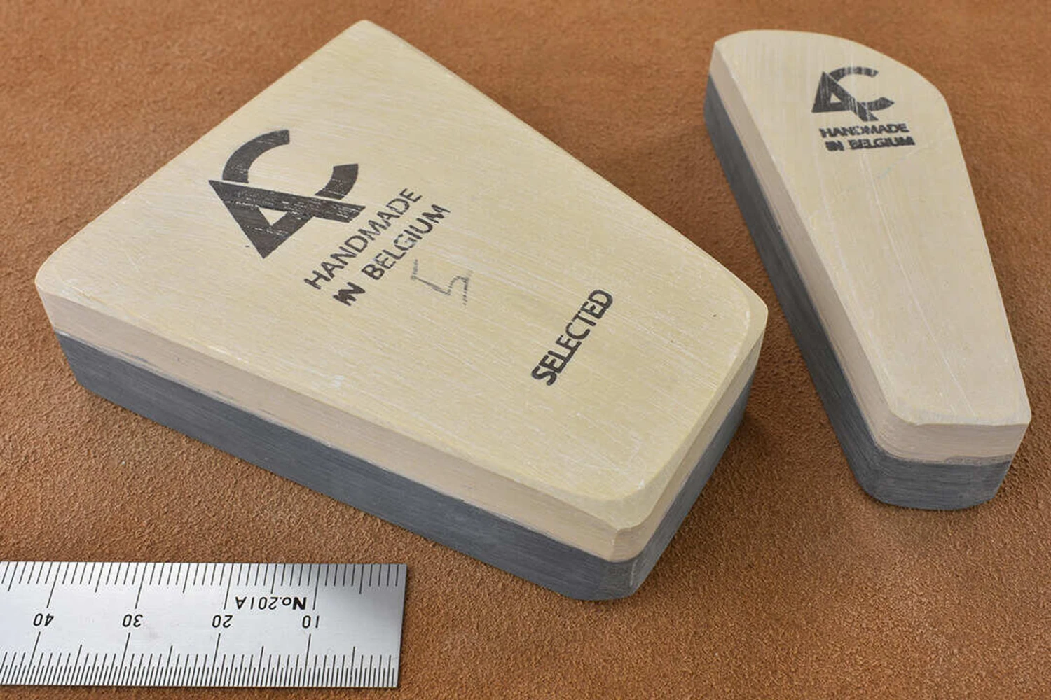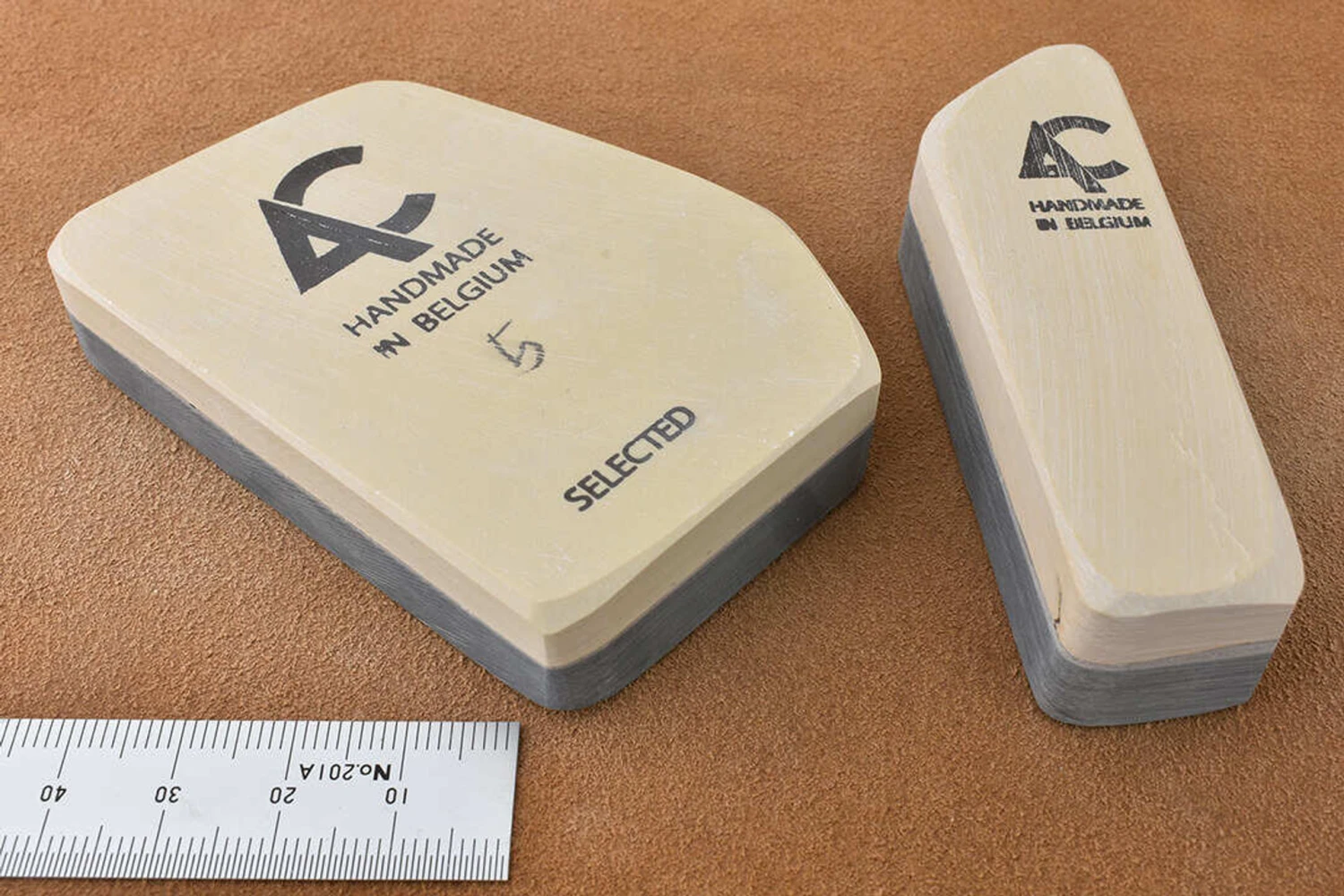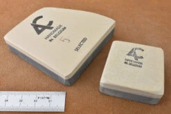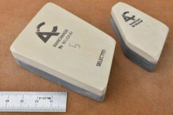The famous Belgian Coticule, irregular shaped slabs of selected yellow coticule whetstone bonded to a non-sharpening supporting layer of shale. Belgian Coticule bouts come in all different shapes and sizes – triangles, parallelograms, squares, pentagrams. The stones follow the natural shapes available in the rock so each one is absolutely unique, making boxes to fit them can be a fun project.We supply each coticule with its own natural slurry stone, this works like a nagura to open the surface and raise a creamy slurry of sharpening grit.We stock a wide range of sizes and each stone is individually listed so you can see exactly what you are buying, smaller stones are great for sharpening penknives, marking knives and honing the small irons of joinery planes, larger ones are more suitable for chisels, razors and bench plane irons.What grit is coticule? In terms of where it fits into your sharpening regime, the answer is 4000 – 10,000 depending on how you use it.Like wine and people, each piece of natural coticule has it’s own individual characteristics, before very long you won’t worry about grit numbers and will instead be concerned with technique – the interplay of slurry thickness and pressure to get the desired result from your particular stone.At the two extremes, slurry with the consistency of double cream and moderate pressure gives the fastest cut, water only and the lightest possible touch gives the finest polish. Using your slurry stone and a spray bottle to manage the consistency and progressing through double, single, full cream, skimmed milk and water with progressively lighter pressure at each stage is the equivalent of working through the grits. The slurry will eventually blunt with use (how quickly this happens will vary from stone to stone) so rinsing the surface periodically and raising a fresh slurry will keep your coticule cutting efficiently.