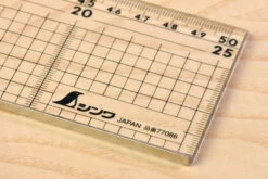 A thick, crystal clear, bevelled acrylic rule with a stainless steel strip on the other edge for cutting. The flat on the bevelled side is the same thickness as Shinwa drawing triangles so they work nicely together.The sharp black markings are in the back surface, eliminating the potential issue of parallax, whole mm graduations and a 5mm grid with 1mm graduated perpendiculars every 5cm for accurately marking and cutting parallel lines.Harmonious thoughtful Japanese design that enhances your creative process.Product Dimensions: 510 x 60 x 5mm