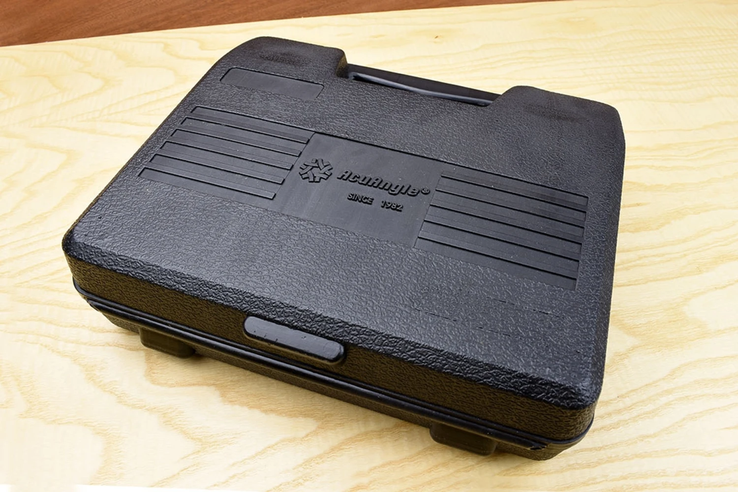 The Shinwa AcuAngle A-600 is an extremely sensitive and accurate plumb level.It works on the same gravitational principle as a medieval plumb level, but uses the construction methods of a mechanical navigational compass, with a bearing mounted spindle, oil filled chamber and rotating bezel with a vernier scale allowing very accurate measurement to 5 arcminutes of a degree.The base is magnetic so it can be used in conjunction with a good quality straightedge to give accurate levelling and angle measurement with a wide reference surface.Taking an angle:Check that 0 on the rotating bezel is aligned with 0 on the vernier scale.Set the level on the surface to be measured.Sight up the two inverted Ys on the yellow triangle, moving your head until they become one.Adjust the rotating bezel to the nearest full degree mark.Read off the adjustment on the vernier and add or subtract the arcminutes as appropriate.Giving an angle:Set the desired angle using the rotating bezel and vernier scale.Set the level on the surface to be measured.Sight through the level, moving your head to align the two on the yellow triangle.Shim or adjust the surface until the inverted Y on the chamber aligns perfectly with those on the yellow triangle.There is a bubble held in the back of the chamber to regulate the internal pressure (air compresses, oil does not) but the shape of the chamber means it is not visible from the front of the level in normal use. Cast iron body Magnetic base Brass weight (unaffected by magnetism) Supplied in a double walled fitted case