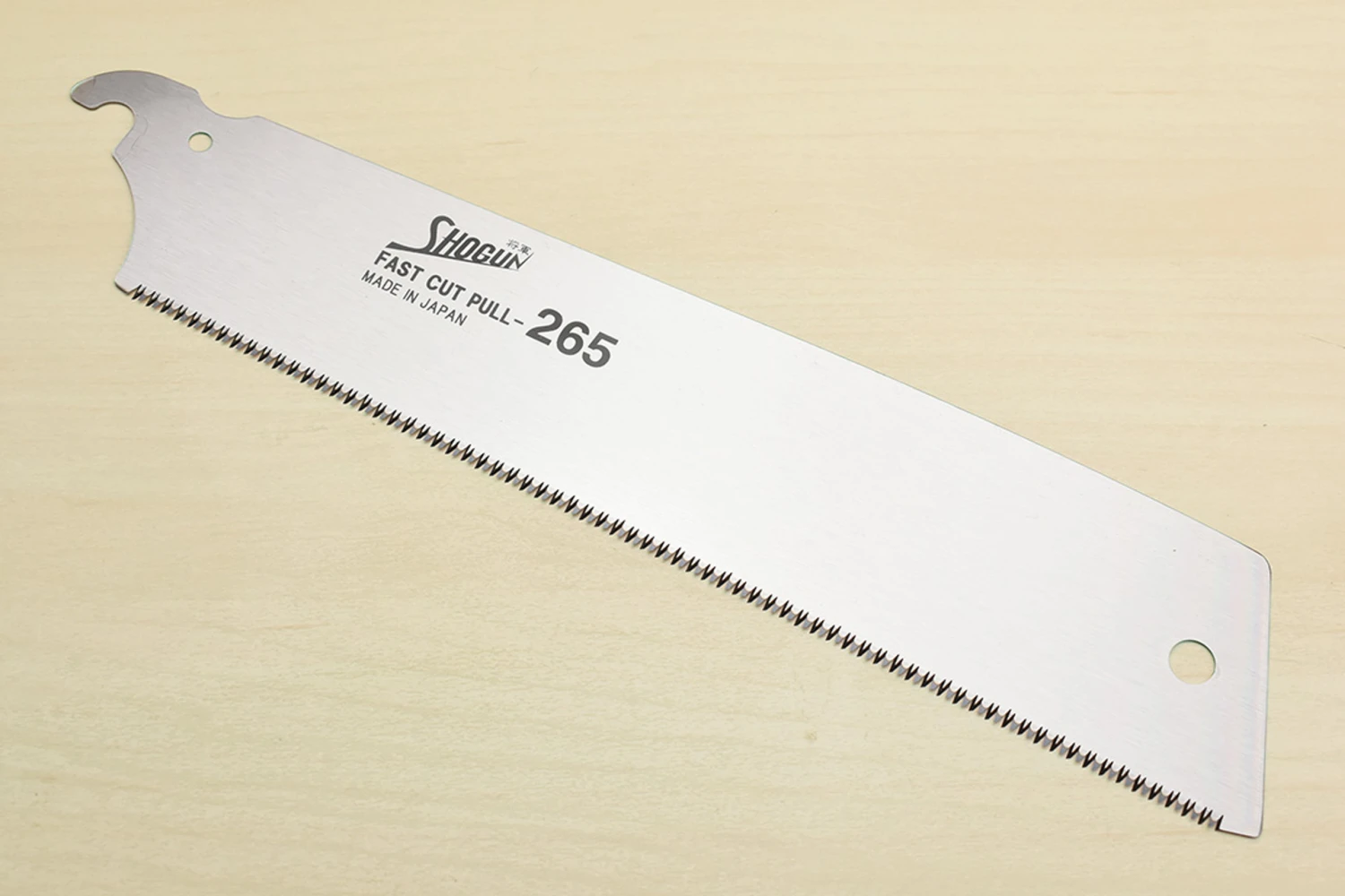 Replacement blade for the Shogun 265mm Crosscut Kataba, compatible with universal kataba and folding kataba. Blade length: 265mm Blade thickness (plate): 0.6mm (kerf): 0.9mm 16tpi Maximum practical cutting depth: unlimited