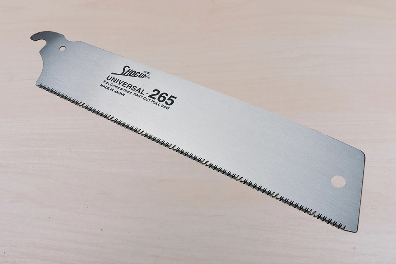 Replacement blade for the Shogun 265mm Universal Kataba. Elecrical-pulse hardened teeth suitable for rip, cross and slant cutting Blade length: 265mm Thickness: 0.6mm Kerf: 0.9mm (+/- 0.05mm) Tooth Space: 1.75mm 16tpi Made in Japan