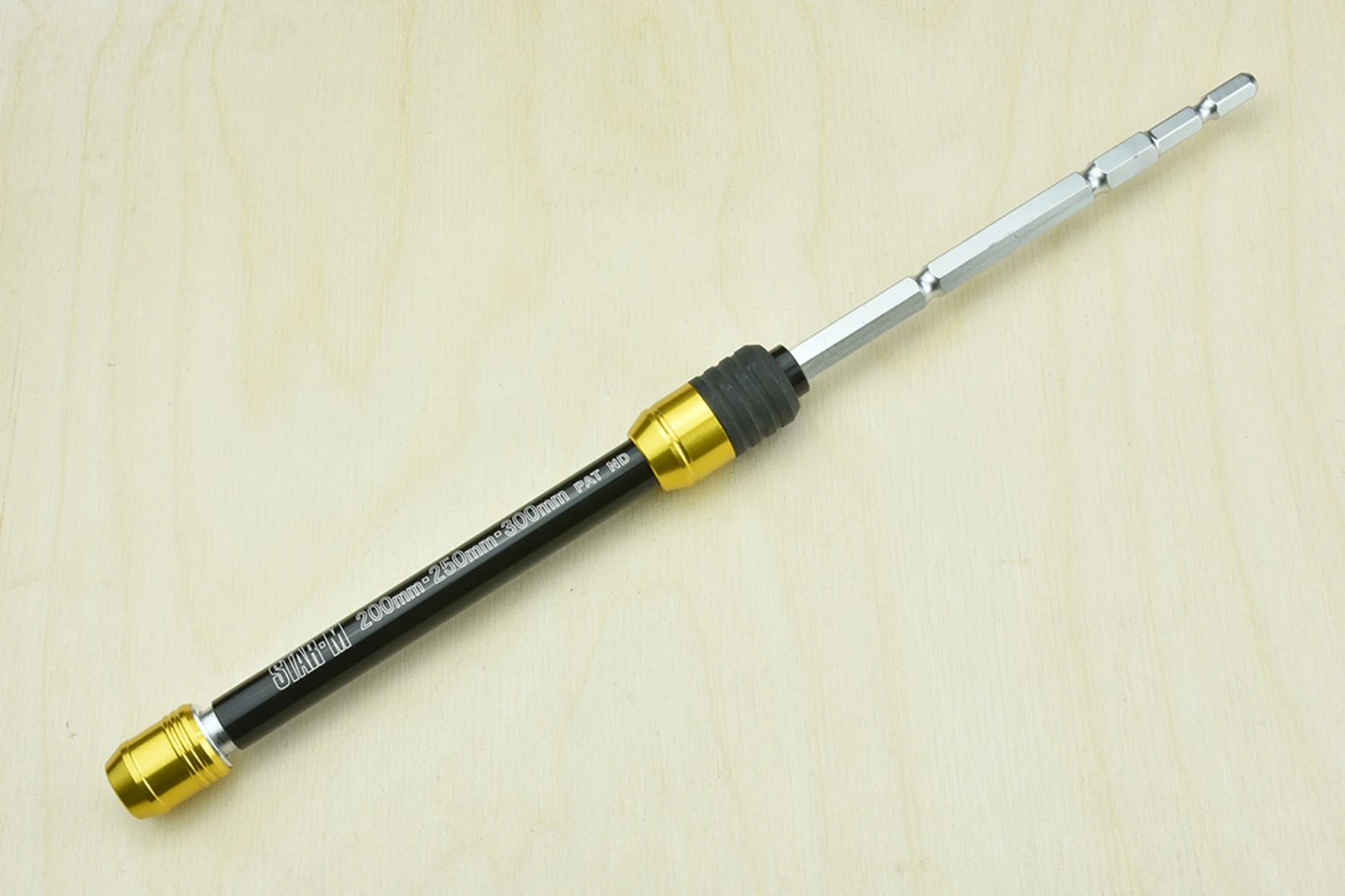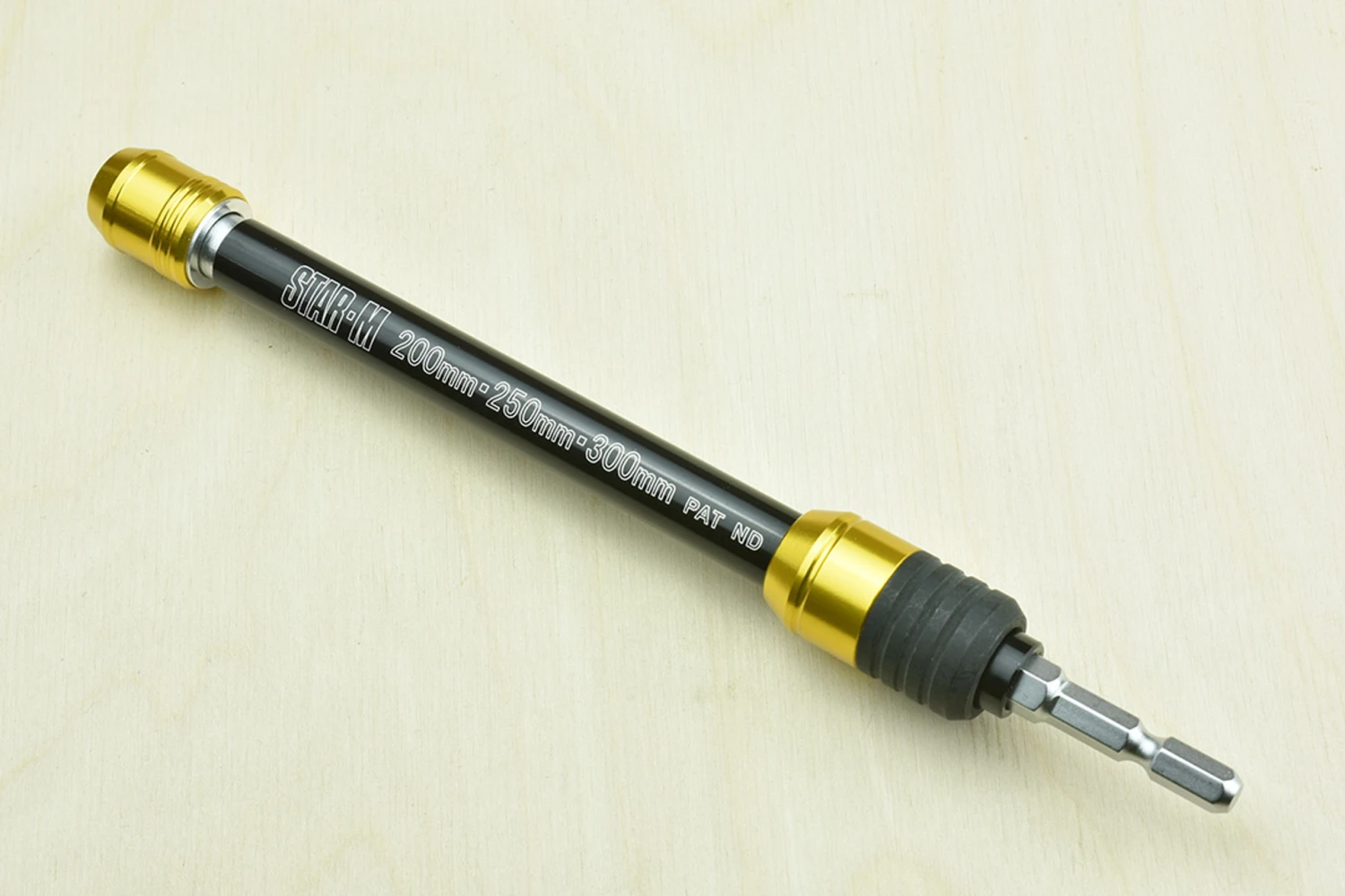 Now here’s a clever idea. A three stage extendable extension that gives you 200mm, 250mm or 300mm of extra reach on your hex shank drills and driver bits so that you can adjust it for the situation at hand and still retain maximum control. It is designed to get to those awkward places, definitely NOT for drilling deep holes.Beautifully from high quality materials, the quick change hex chuck is made to suit Japanese hex shank bits, which are longer than Western ones. Construction: Aluminium and alloy tool steel Lengths: 200mm, 250mm, 300mm Hex: 6.35mm Japanese Speed: less than 3,000 rpm Made in Japan