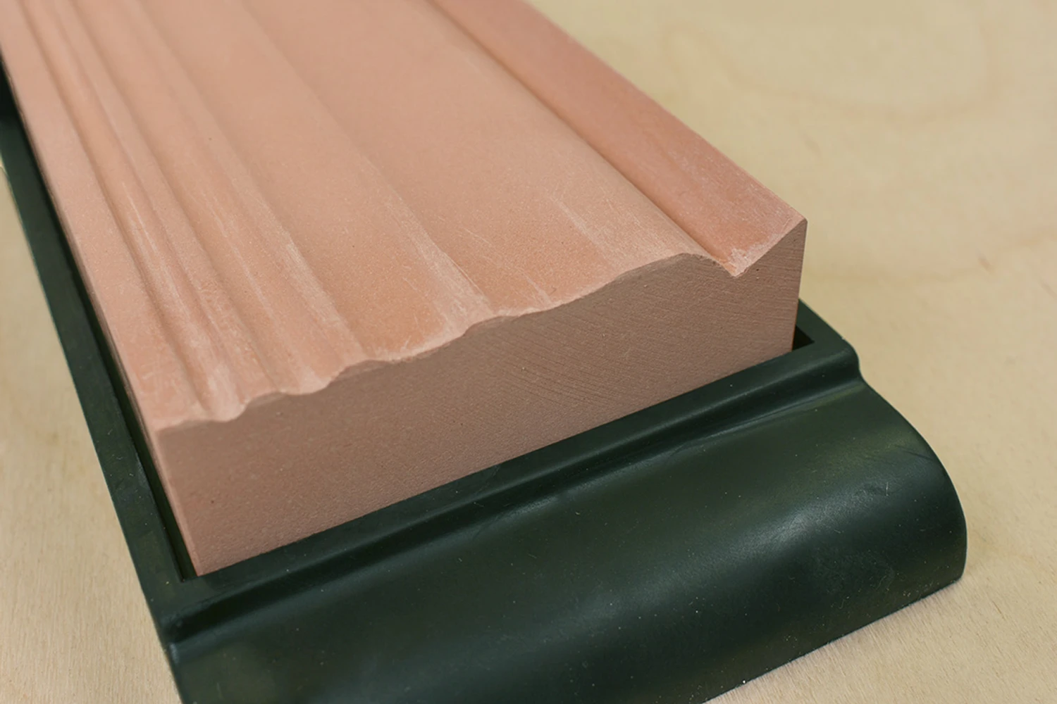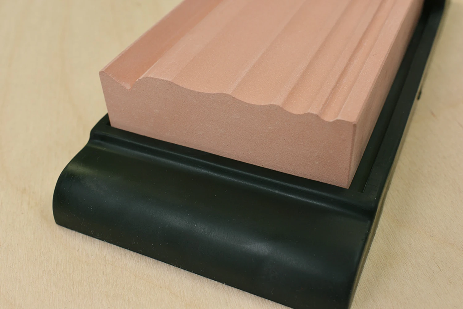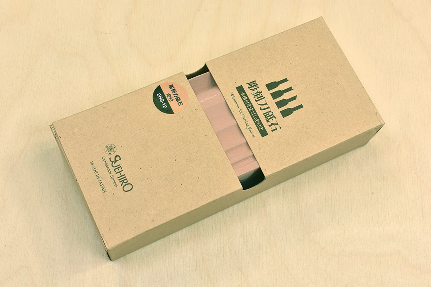 With multiple concave and convex profiles plus a large flat surface on the reverse, a whole range of small carving tools can be sharpened easily and consistently using this compact Japanese whetstone. Keeping the blades at the correct angle, and sliding them gently back and forth in the appropriately sized groove even triangular and round chisels can be sharpened using the convex parts of the whetstone. These new formula, high-quality white aluminium oxide stones are wear-resistant and non-absorbent so there’s no need to soak, simply sprinkle on some water or wet the stone with your hand and you are good to use immediately. Another option is to put water in the integral tank and dip the chisel in it before sharpening.Comes with its own non-slip rubber stand base to keep the stone secure, with an integral water tank/eraser storage. Coarse grit: #280 Dimensions: 98mm x 65mm x 20mm Includes an eraser for removing grime Made in Japan