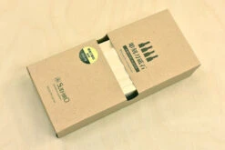 With multiple concave and convex profiles plus a large flat surface on the reverse, a whole range of small carving tools can be sharpened easily and consistently using this compact Japanese whetstone. Keeping the blades at the correct angle, and sliding them gently back and forth in the appropriately sized groove even triangular and round chisels can be sharpened using the convex parts of the whetstone. These new formula, high-quality white aluminium oxide stones are wear-resistant and non-absorbent so there’s no need to soak, simply sprinkle on some water or wet the stone with your hand and you are good to use immediately. Another option is to put water in the integral tank and dip the chisel in it before sharpening. Comes with its own non-slip rubber stand base to keep the stone secure, with an integral water tank/eraser storage. Coarse grit: #3000 Dimensions: 98mm x 65mm x 20mm Includes an eraser for removing grime Made in Japan