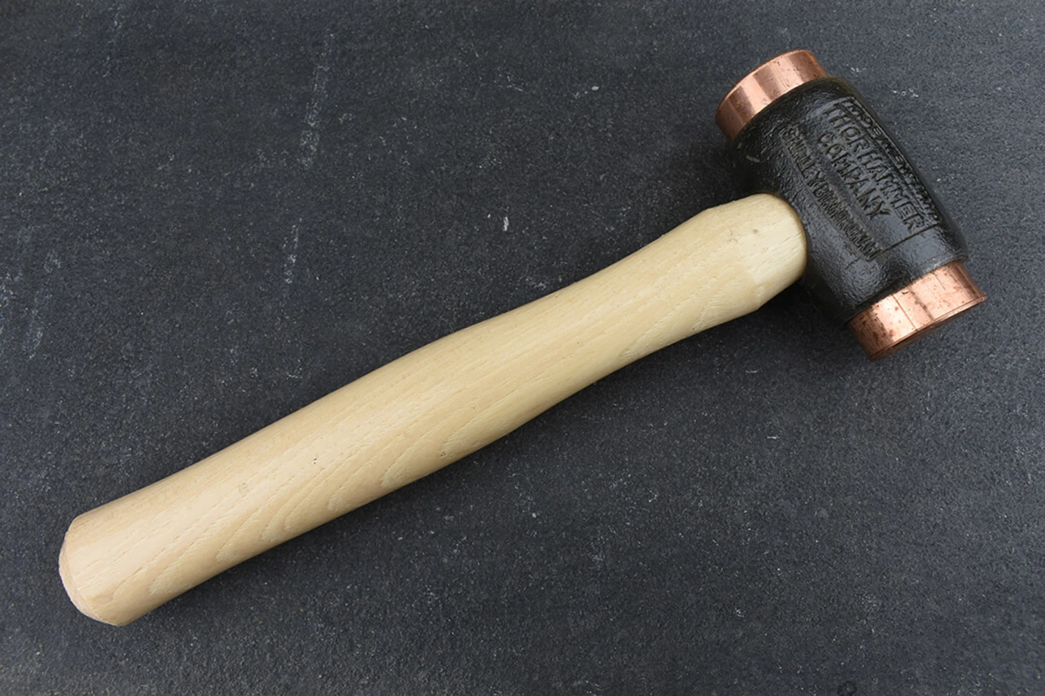 Introduced in the 1930’s, the classic Thor copper faced or copper / hide faced hammers were popularised by being included in car toolkits for undoing and tightening the spinners in the middle of spoked wheels. Over the years motoring enthusiasts discovered that they’re also just the job for freeing off seized drum brakes, easing apart machined castings and nudging things home without the risk of denting or cracking them. As well as being a excellent soft faced tool for the automotive industry they have since proved their usefulness in all sorts of general engineering, millwrighting and industrial situations and remain the company’s most popular products to this day.In the 1970’s the beautiful branding cast into the head was replaced with just a number on the side and a sticker, thankfully some bright spark squirrelled away the original dies and they have recently been brought back into service to produce the Classic range.This version has the Thor branded head fitted with two copper faces to give a safe but high-impact blow. The copper faces are designed to wear and mushroom over the malleable iron head, at which point the hammer is ‘worn in’, the hammer is ‘worn out’ when the malleable iron reappears with a little copper circle in the centre – it usually takes decades of hard use to get from one condition to the other. In theory the faces are replaceable but it’s a right bear of a job (classic apprentice task) and usually works out cheaper to use the hammer to destruction and buy a new one.Overall length: 297mm (11.69″) approxHead width: 100mm ( 3.93″) approxFace diameter: 37mm (1.45″) approxWeight: 44.44oz (1260g)Ash wood handleIf buying to complete an O/E toolkit please check with your classic car club to ensure the correct size/spec of hammer for your vehicle.