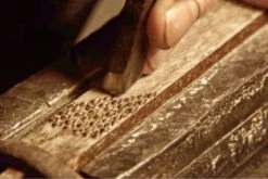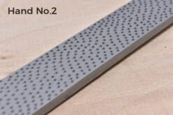 After drilling or sawing away as much waste as possible, this graduated set of large aggressive handmade rasps are used to take larger workpieces as efficiently as possible to ‘near net shape’. The rectangular section hand rasp is the coarsest of the three and will scoff its way through waste and provide level even surfaces to work from. The cabinet rasp is used to originate concave surfaces and place the chamfers that will define the lateral curvatures as you progress from two dimensions to three. The halfround rasp is narrower than the cabinet with a steeper arch so it can get into tighter curves, a little finer and more controlled, it refines the finish as you establish a consistent small margin around your layout lines. Once the overall shape is established, the really rewarding bit begins as you blend facets and home in on the final curved surfaces with smaller finer rasps. Each Workshop Heaven hand stitched rasp begins life as a forged and annealed blank of high carbon tool steel is carefully ground and ‘fined’ to a smooth surface before being strapped to a soft anvil to have their teeth individually raised or ‘stitched’ one by one with a special punch and a curved file makers hammer. The handles are turned from English walnut with brass ferrules to a 200 year old Holtzapffel pattern, individually fitted and set by hand for a comfortable, elegant and secure grip. Set Includes: Hand Rasp 250mm No.2 (20tcm) Half Round Rasp 250mm No.4 40tcm) Cabinet Rasp 250mm No.3 (30tcm) Rasp CareIn order to keep your rasps clean and free from corrosion we recommend removing any clogging from the surface with a stiff bristled brush and applying a few drops of metalguard ultra liquid corrosion inhibitor after each use. Store your rasps in such a way that they cannot touch or rub against each other.