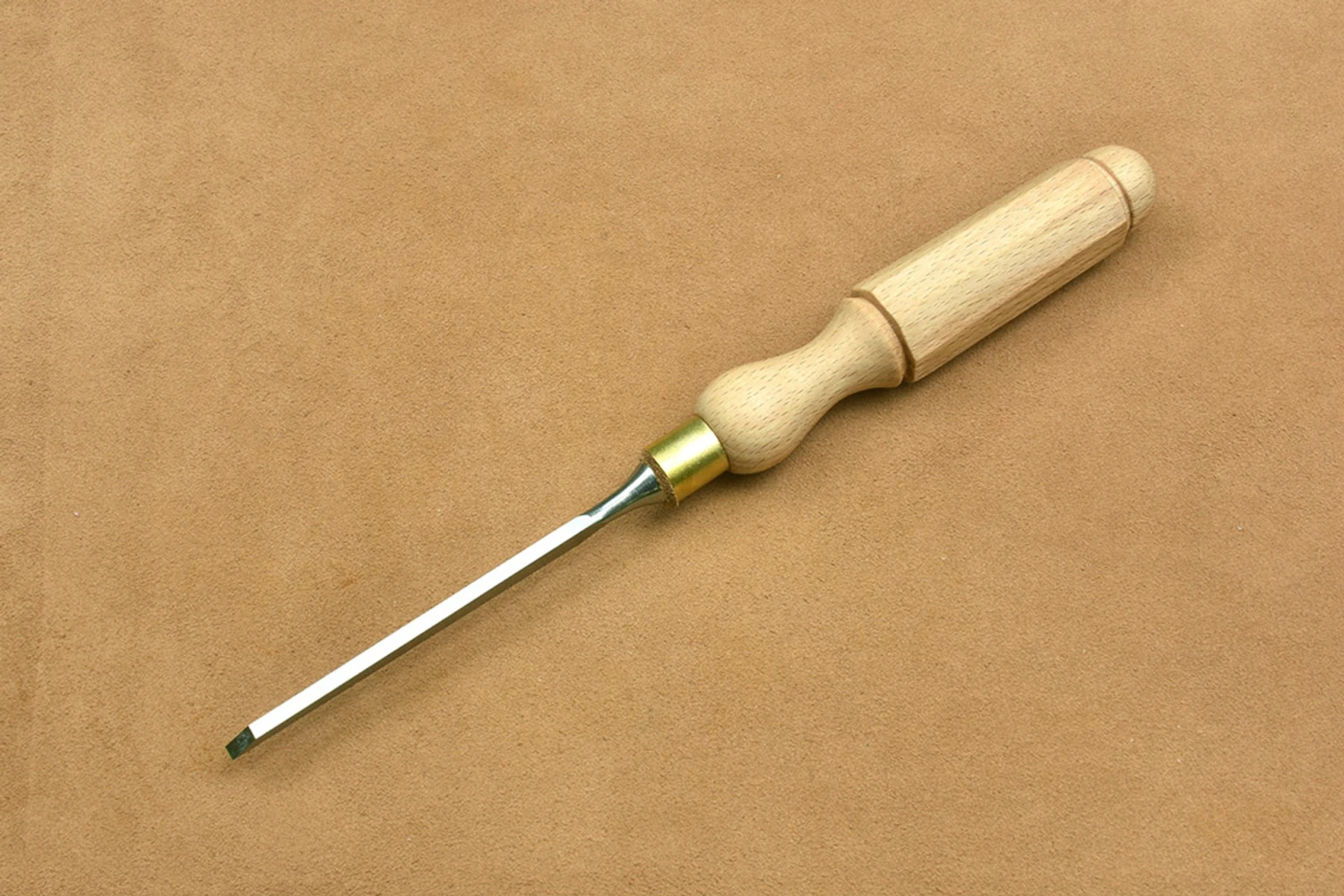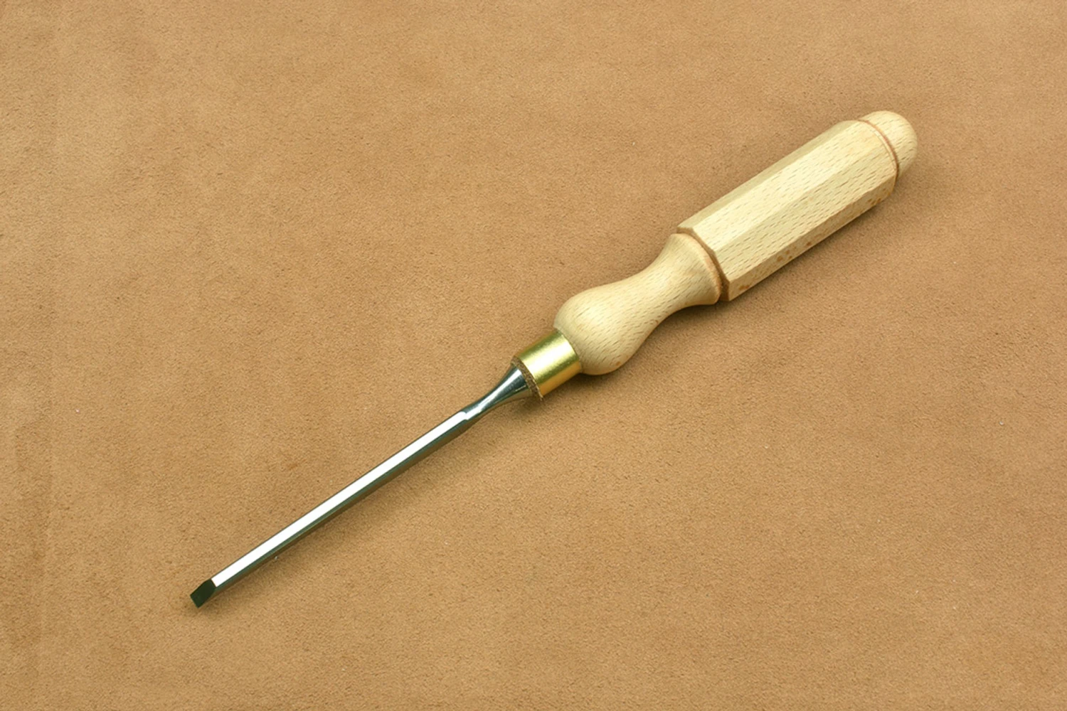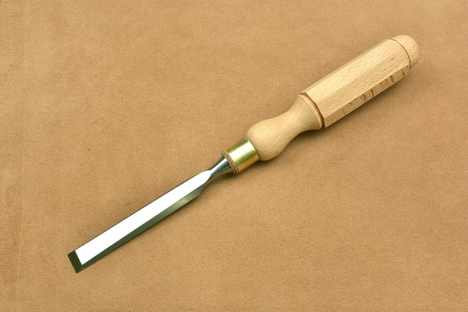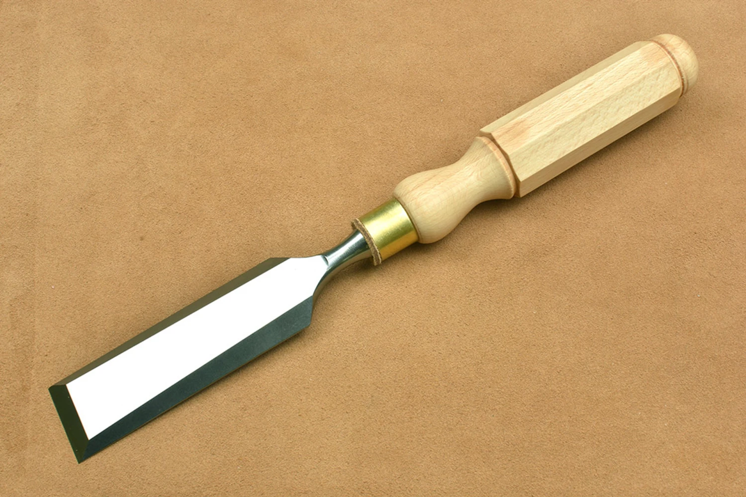 Workshop Heaven ‘Victorian’ bevel edged chisels are the result of a collaboration with a few like minded friends, The handles are English Beech ‘Best London Pattern Octagons’ turned for us in Sheffield at one of the few remaining original Victorian courtyard factories. The waisted bulb is lovely and narrow and the octagonal portion fills the hand just nicely without being too full. The blades were specially made for us by Narex. Forged from high carbon steel with a composition very similar to late Victorian crucible, they are ground to the 8116 pattern that we worked on together some years ago, it has nice thin edges and a particularly light and elegant bolster that works very well with this handle. I think they may have done something special for us with the heat treatment too, sharp eyed observers may notice the shadow line or hamon on the blades. The handles and blades come together in the ironmonger’s workshop, just as they would have done in the past, where we maintain through practice the skillset of the cutler. Each handle is finished with Boiled Linseed Oil before being installed with a hand cut leather washer. These beautiful chisels will hopefully inspire future generations that making things to last is a worthwhile endeavour. Includes: 3, 4, 5, 6, 10, 12, 16, 20, 26, 30, 40, 50mm or 1/8″, <3/16″, >3/16″, ¼”, ⅜”, ½”, ⅝”, ¾”, 1″, 1¼”, 1½”, 2″ in old money) These chisels come boxed up and wrapped individually, however it is not a presentation box and wouldn’t recommend them to be stored like that long-term.