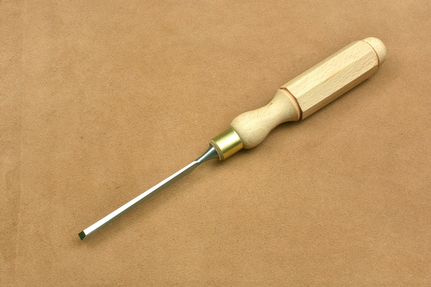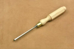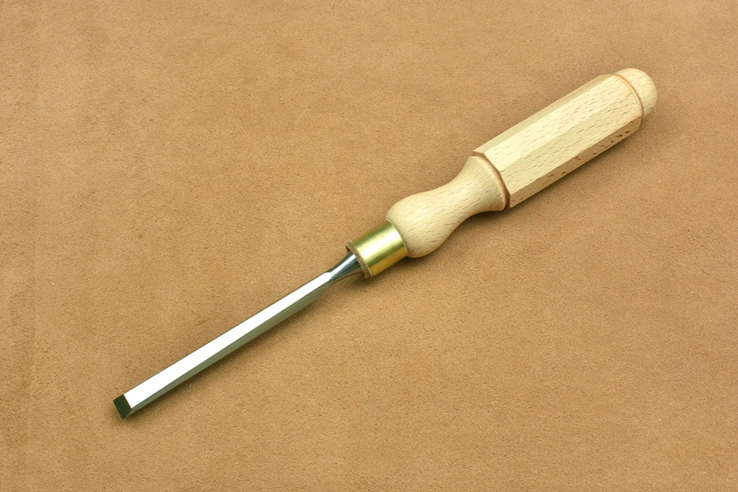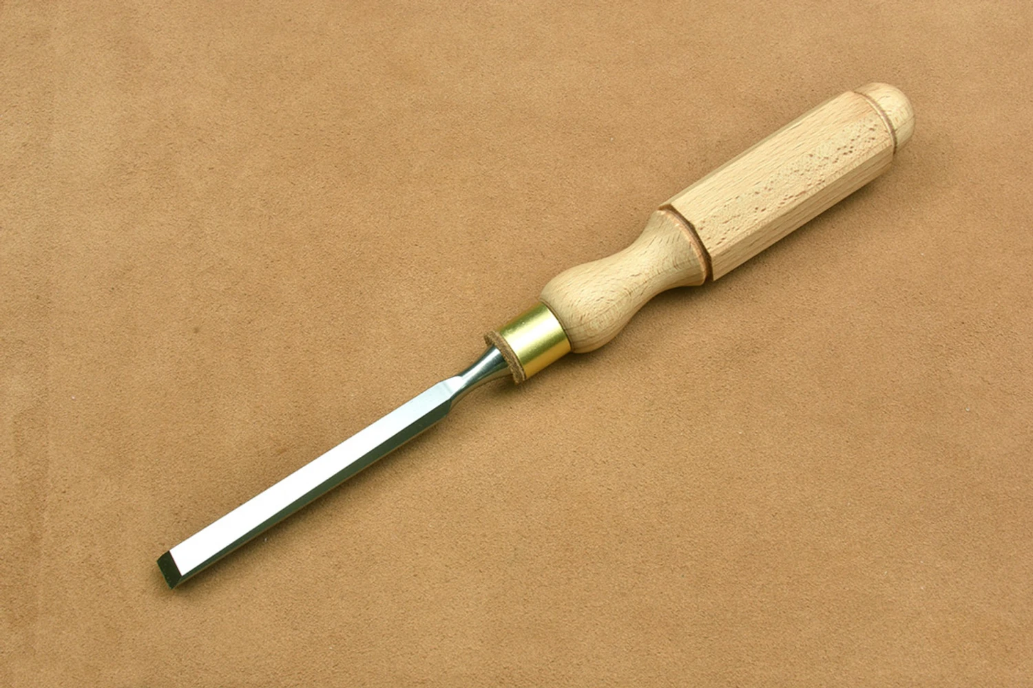 Workshop Heaven ‘Victorian’ bevel edged chisels are the result of a collaboration with a few like minded friends, The handles are English Beech ‘Best London Pattern Octagons’ turned for us in Sheffield at one of the few remaining original Victorian courtyard factories. The waisted bulb is lovely and narrow and the octagonal portion fills the hand just nicely without being too full. The blades were specially made for us by Narex. Forged from high carbon steel with a composition very similar to late Victorian crucible, they are ground to the 8116 pattern that we worked on together some years ago, it has nice thin edges and a particularly light and elegant bolster that works very well with this handle. I think they may have done something special for us with the heat treatment too, sharp eyed observers may notice the shadow line or hamon on the blades. The handles and blades come together in the ironmonger’s workshop, just as they would have done in the past, where we maintain through practice the skillset of the cutler. Each handle is finished with boiled linseed oil before being installed with a hand cut leather washer. These beautiful chisels will hopefully inspire future generations that making things to last is a worthwhile endeavour. Includes: 6, 10, 12, 16, 20, & 26mm or ¼”, ⅜”, ½”, ⅝”, ¾” & 1″ in old money These chisels come boxed up and wrapped individually, however it is not a presentation box and wouldn’t recommend them to be stored like that long-term.